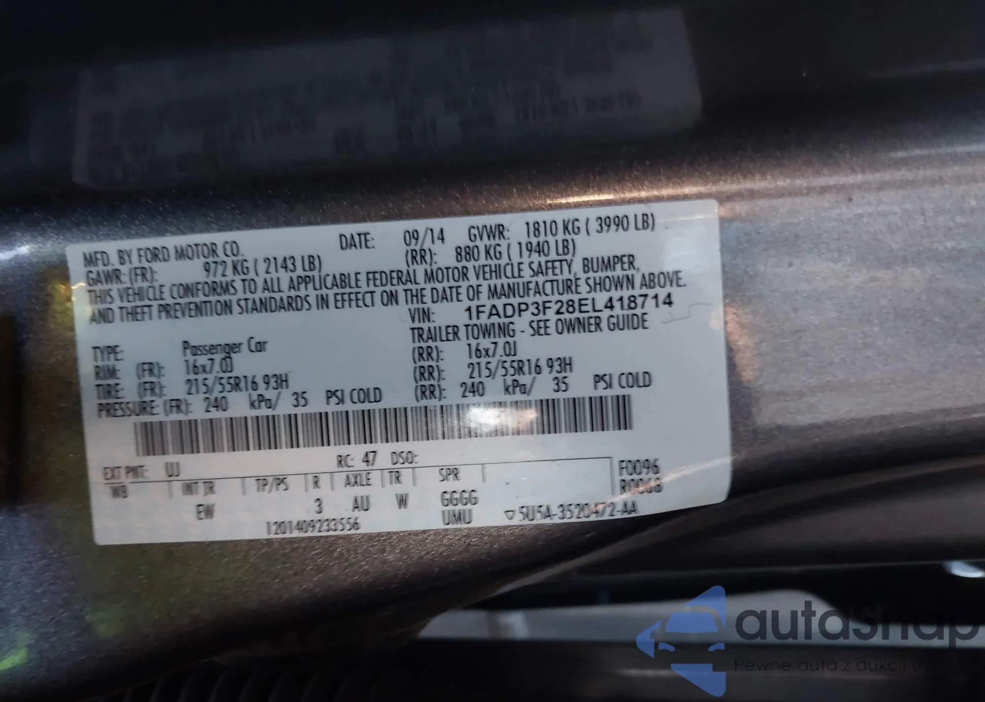 LOT: 41645599 VIN: 1FADP3F28EL418714