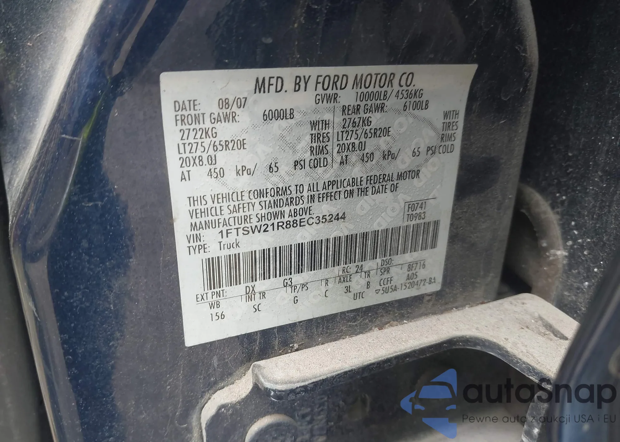 LOT: 42907340 VIN: 1FTSW21R88EC35244