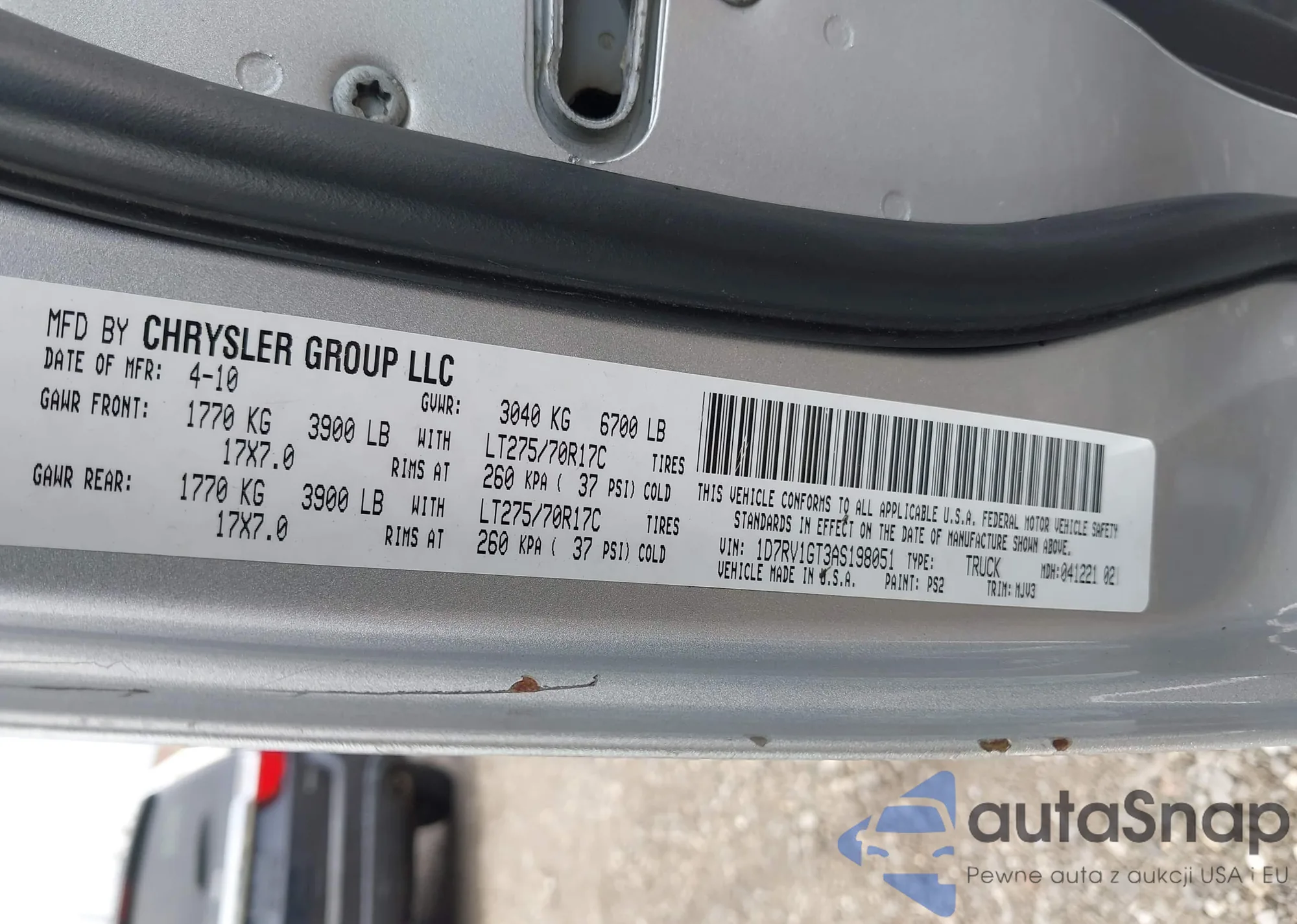 • VIN 1D7RV1GT3AS198051