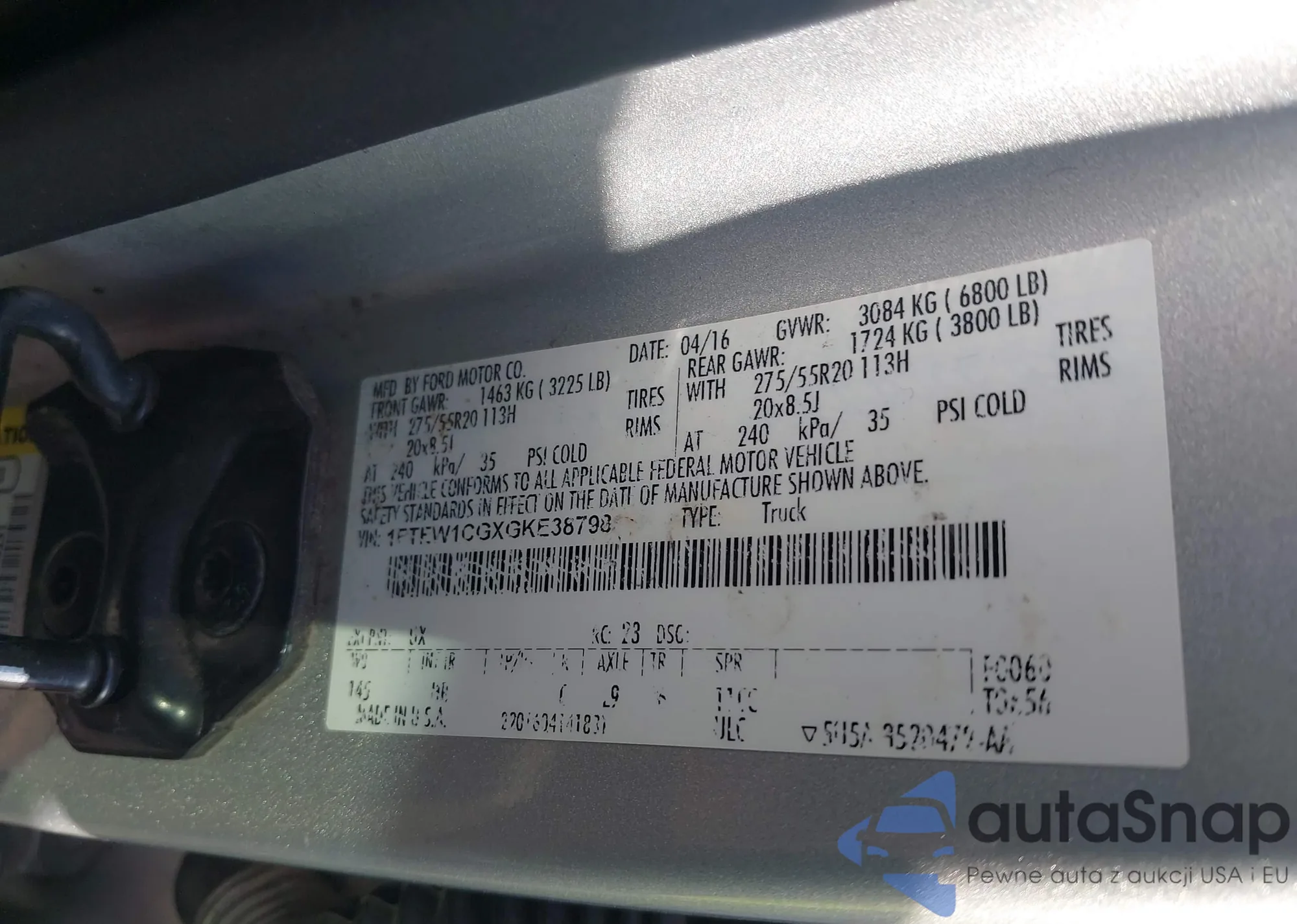 LOT: 43091069 VIN: 1FTEW1CGXGKE38798
