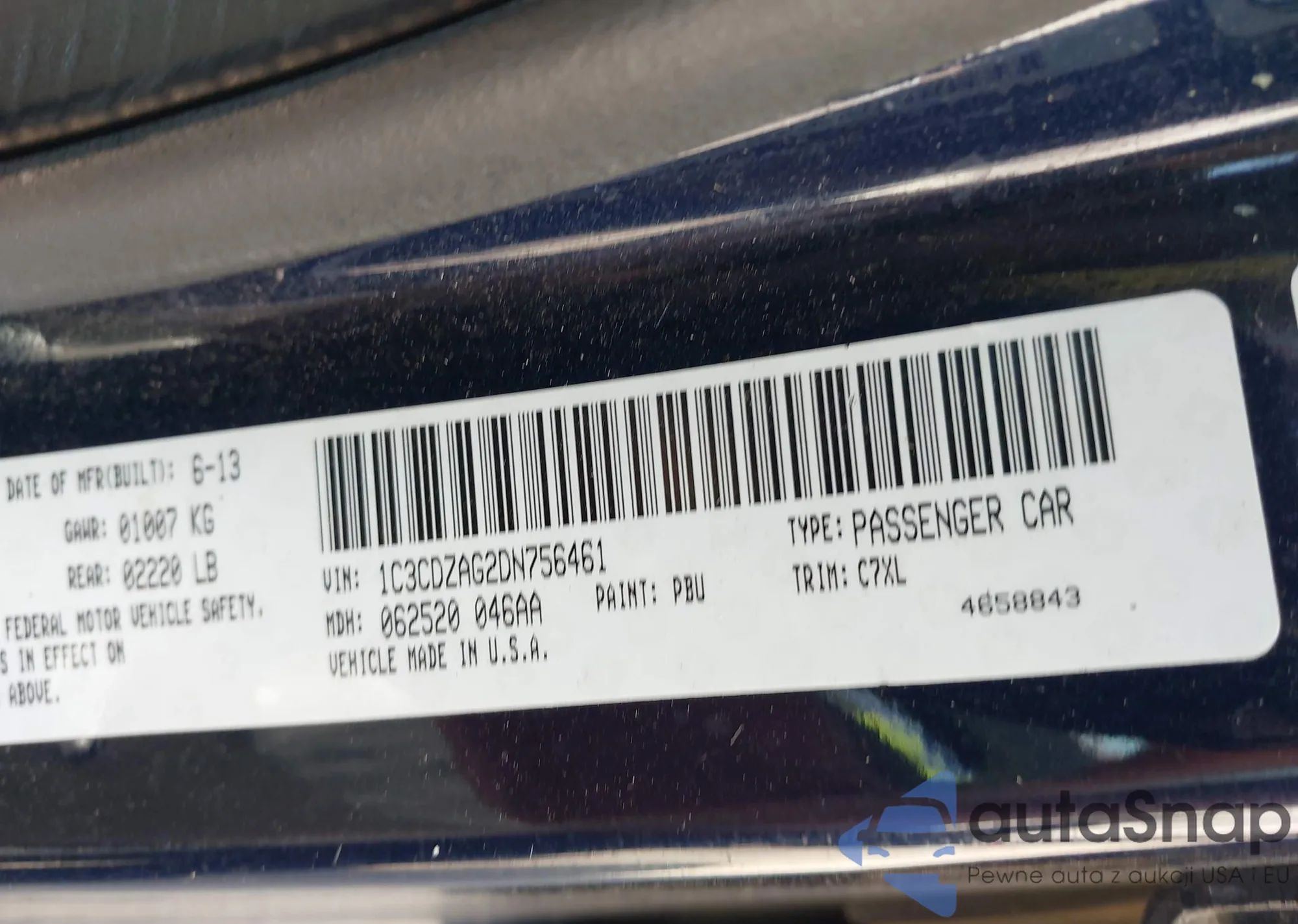 • VIN 1C3CDZAG2DN756461