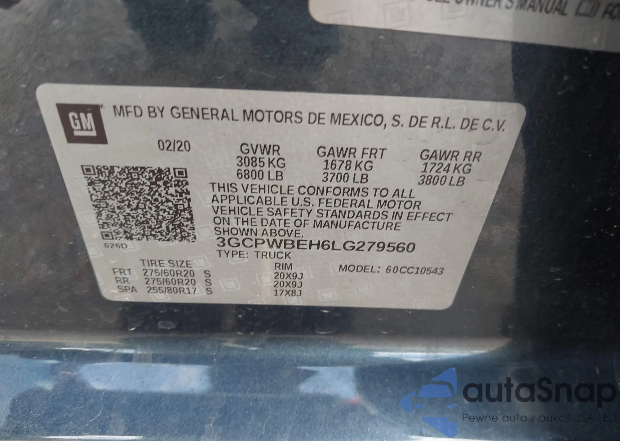 • VIN 3GCPWBEH6LG279560