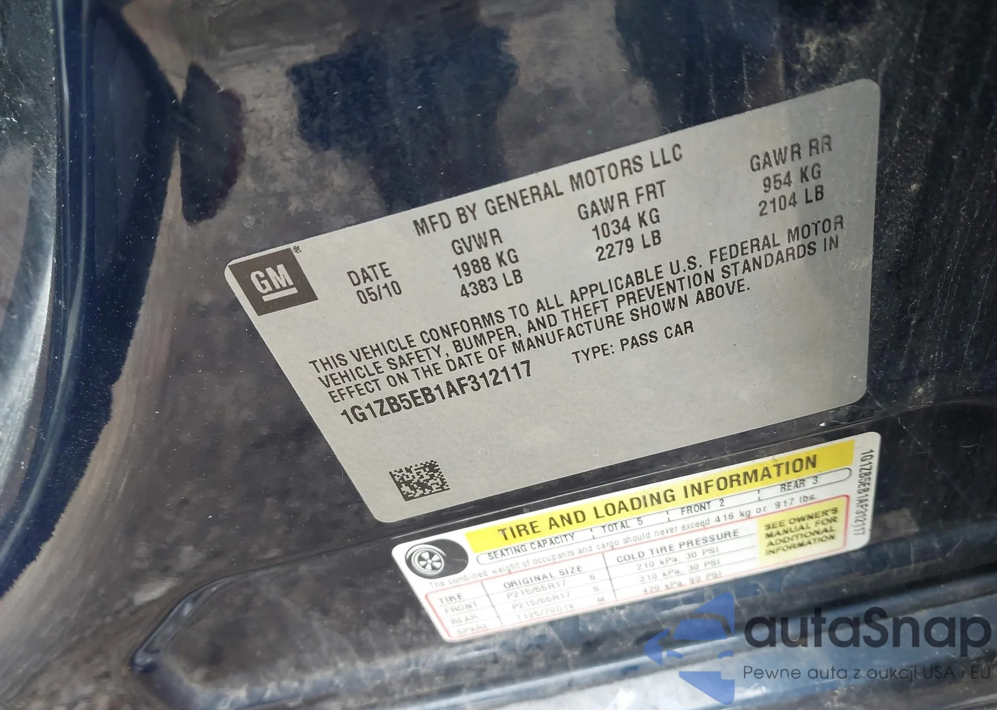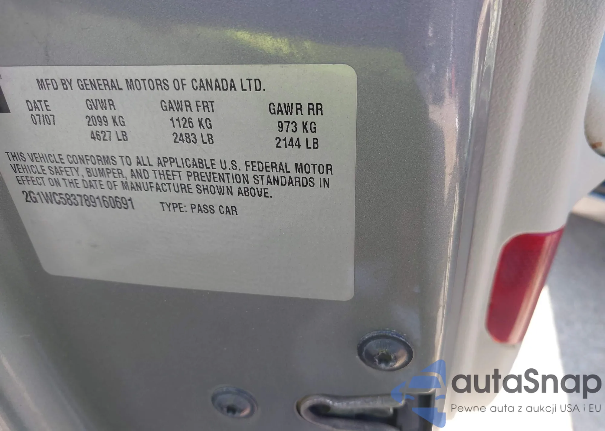 • VIN 2G1WC583789160691