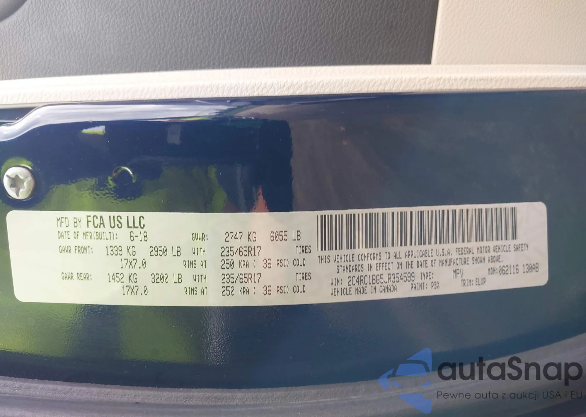 • VIN 2C4RC1BG5JR354599