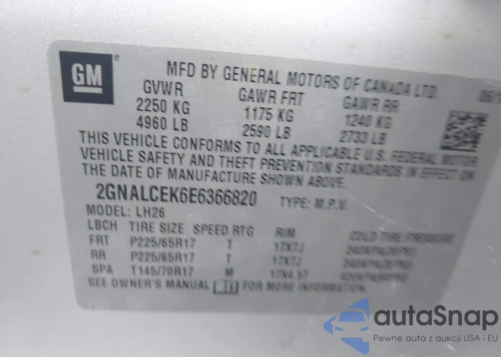 LOT: 43059933 VIN: 2GNALCEK6E6366820