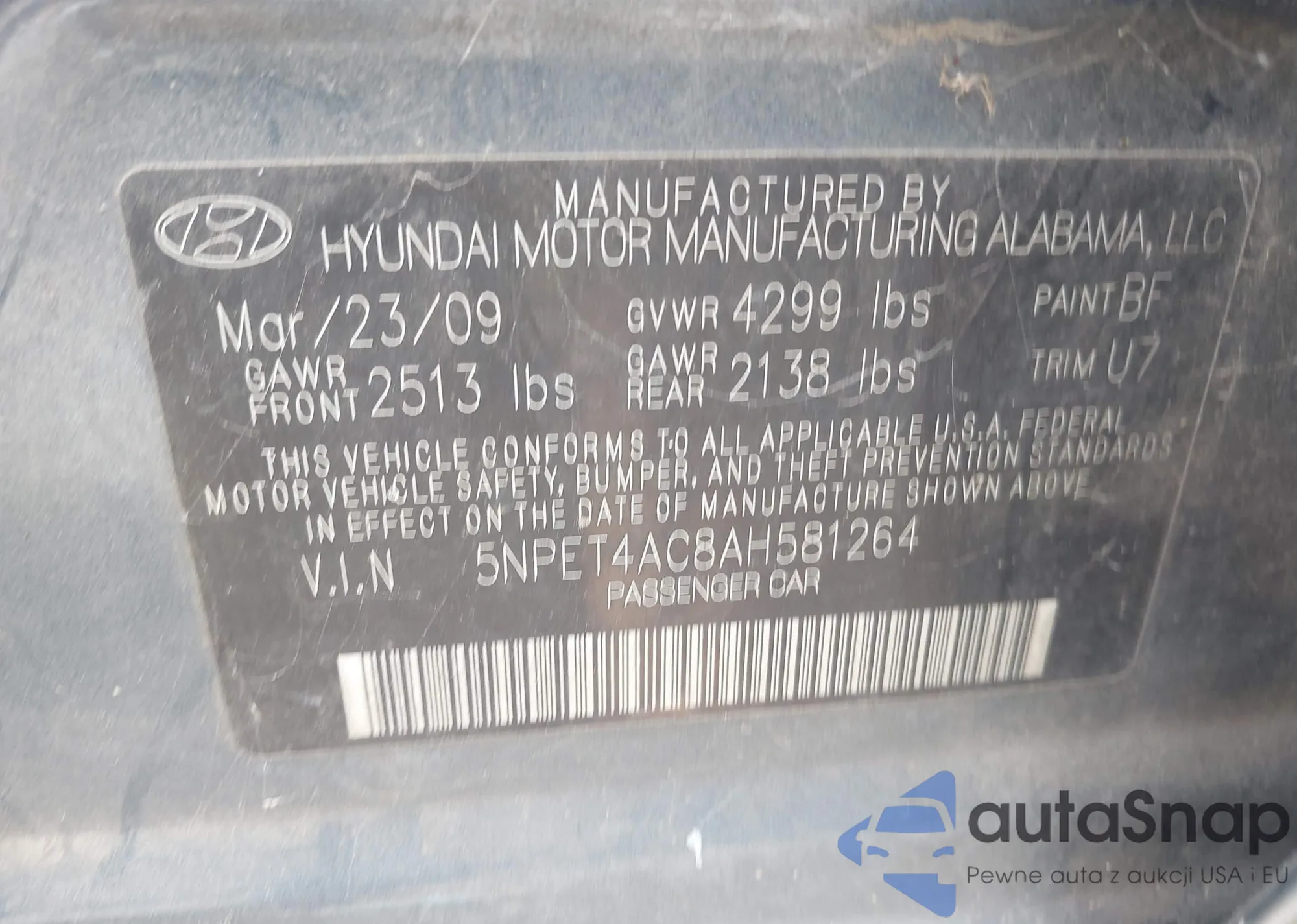 LOT: 42967402 VIN: 2HNYD28659H502243