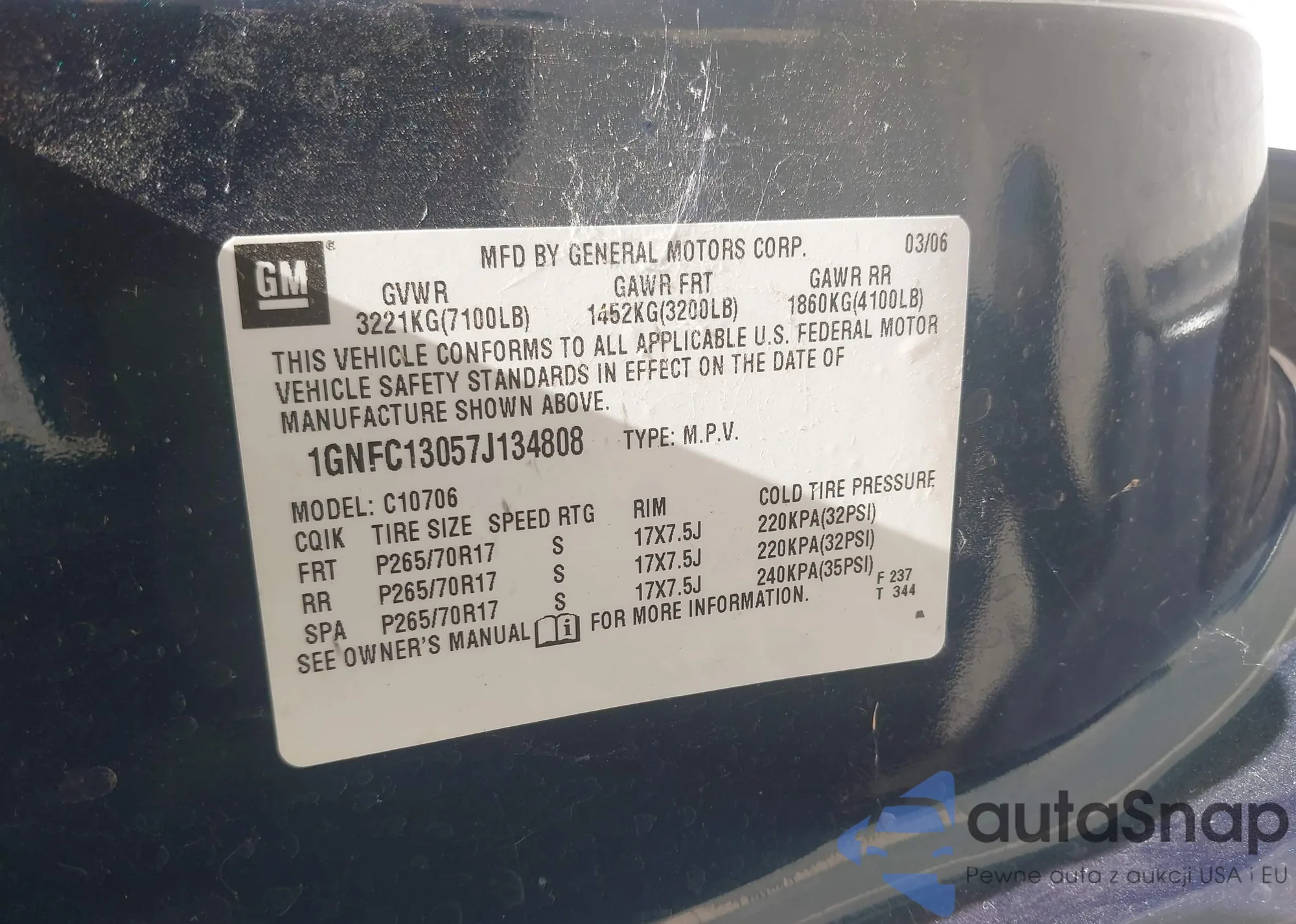 • VIN 1GNFC13057J134808