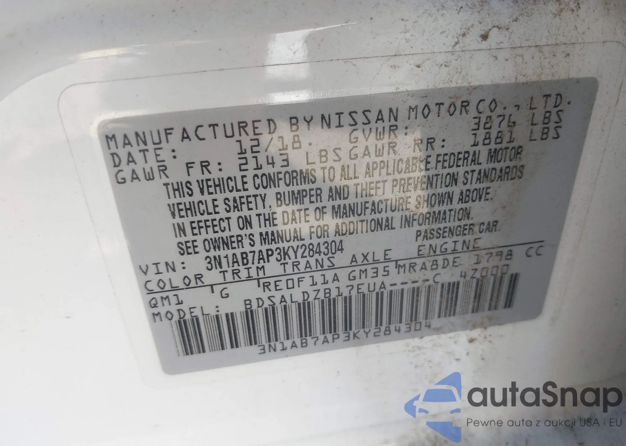 • VIN 3N1AB7AP3KY284304