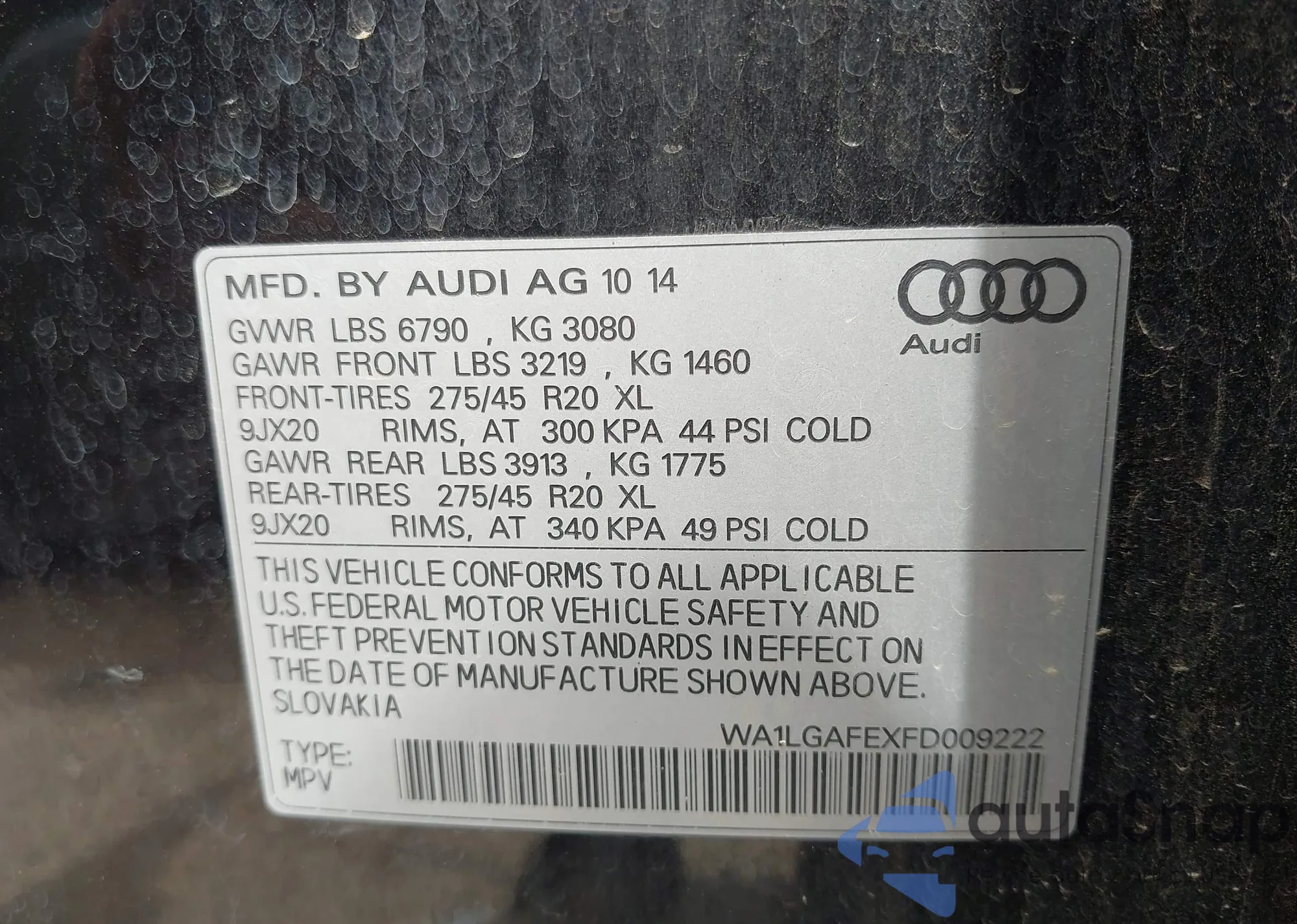 LOT: 42944147 VIN: WA1LGAFEXFD009222