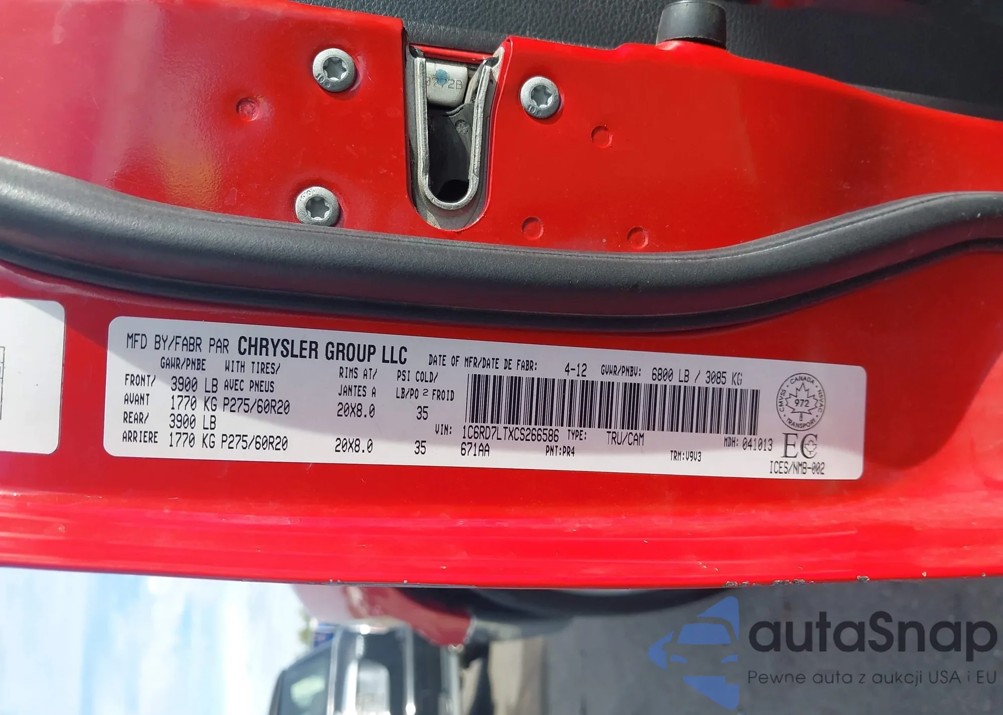 • VIN 1C6RD7LTXCS266586
