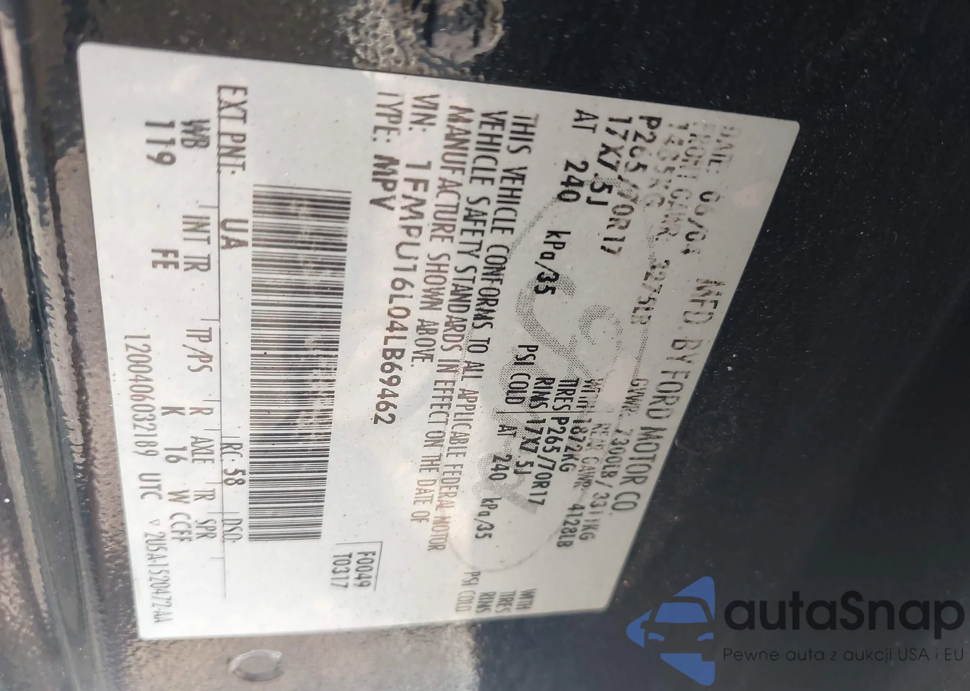 LOT: 43177672 VIN: 1FMPU16L04LB69462
