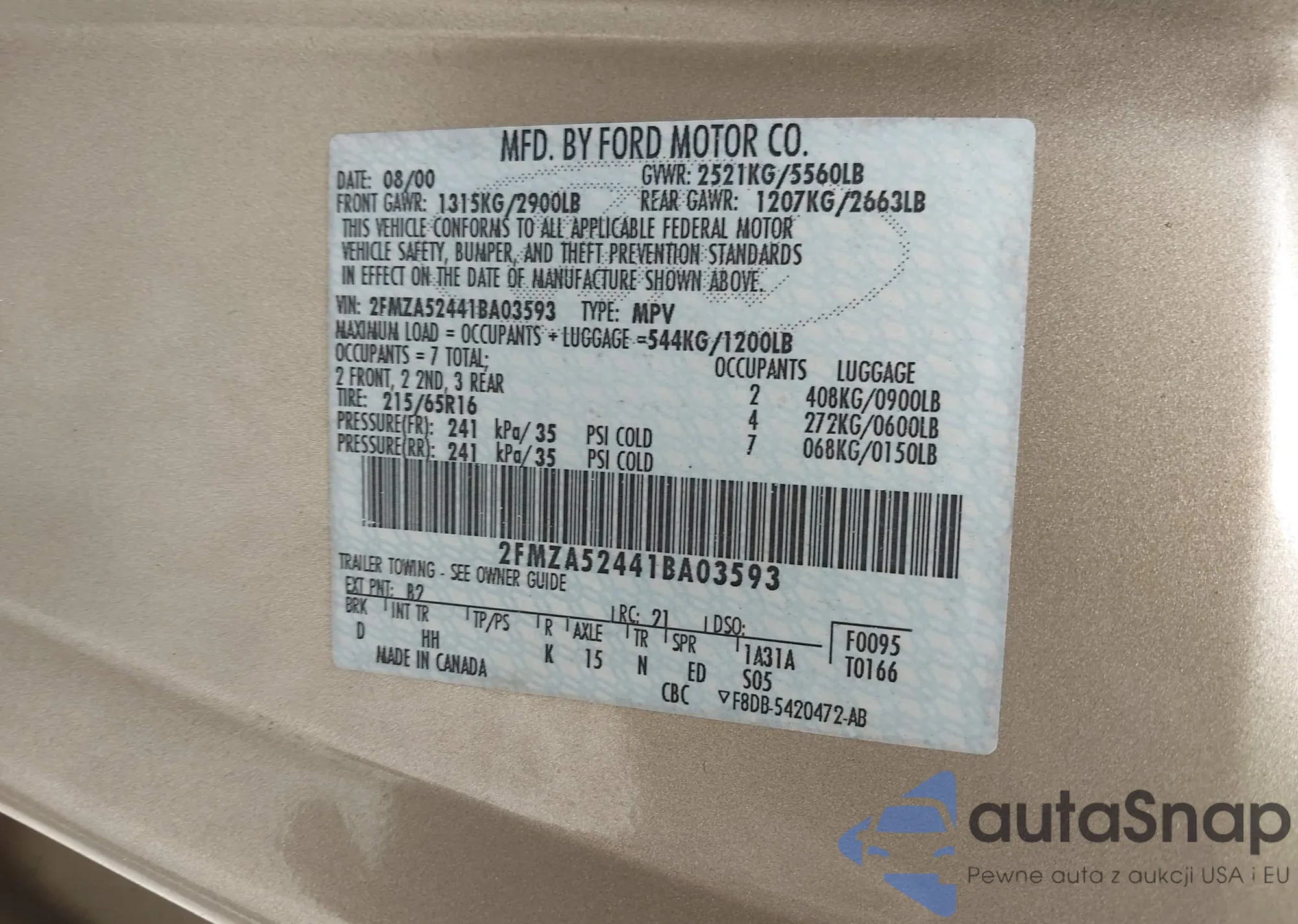 • VIN 2FMZA52441BA03593