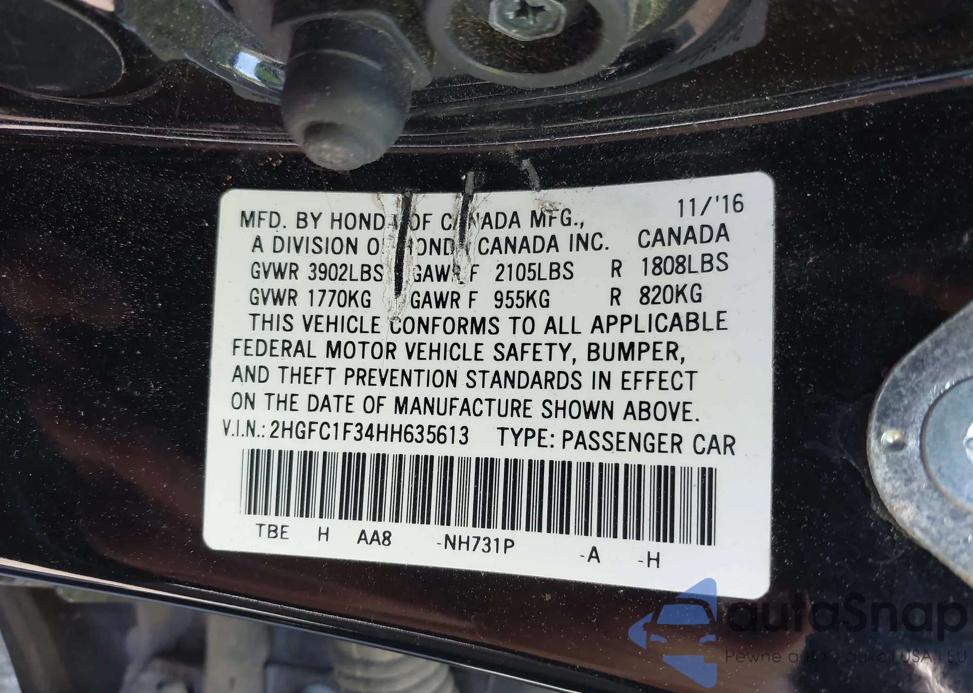 • VIN 2HGFC1F34HH635613