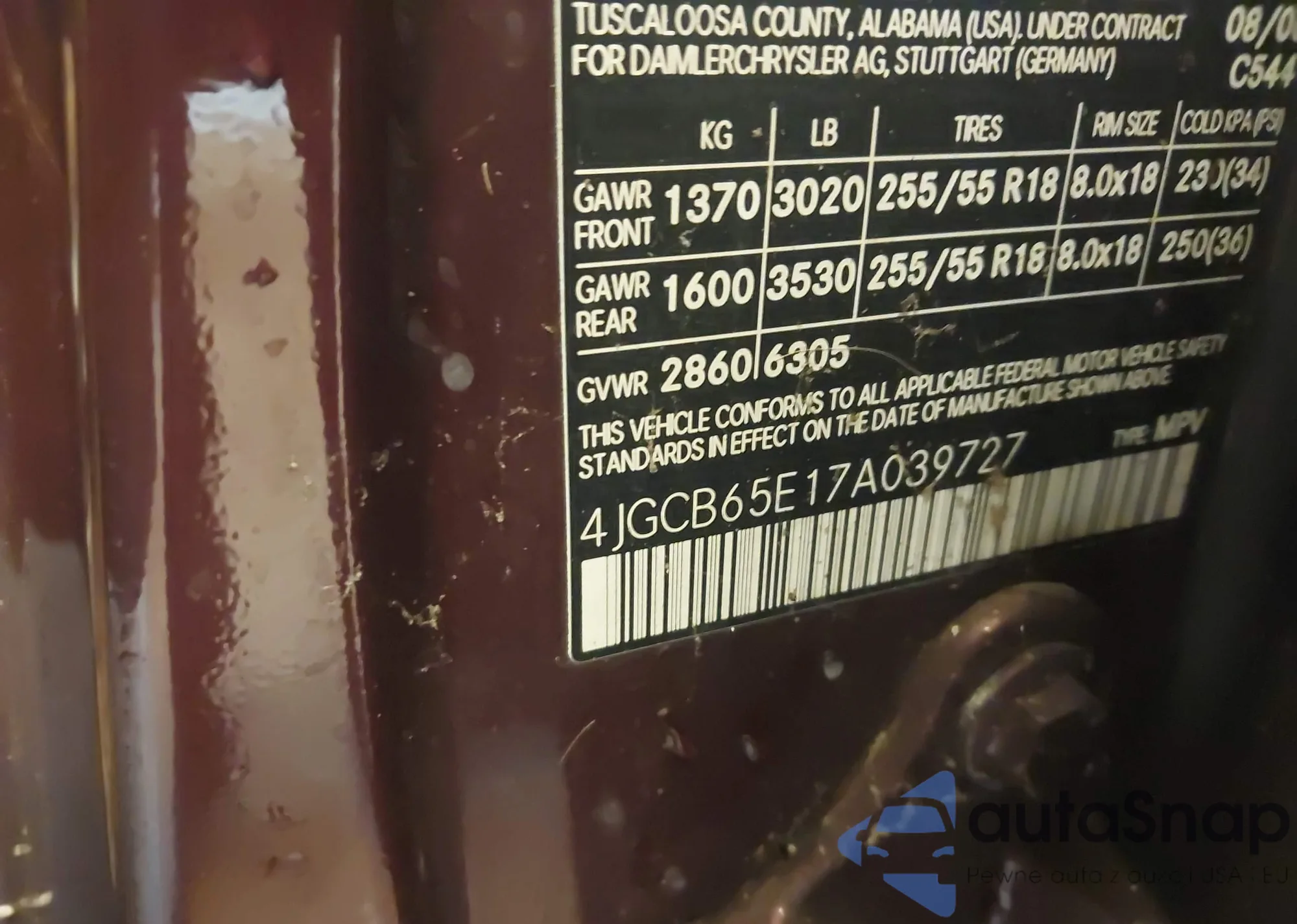 • VIN 4JGCB65E17A039727