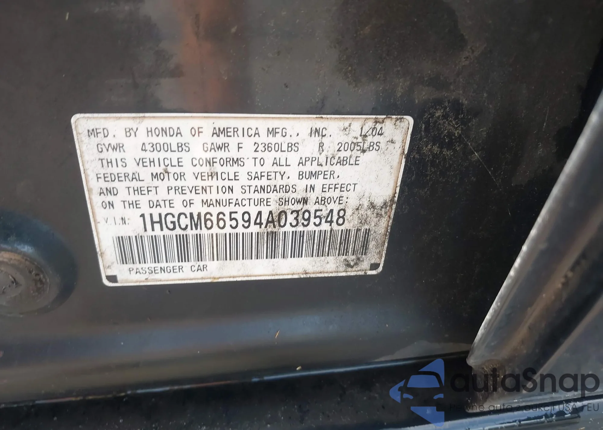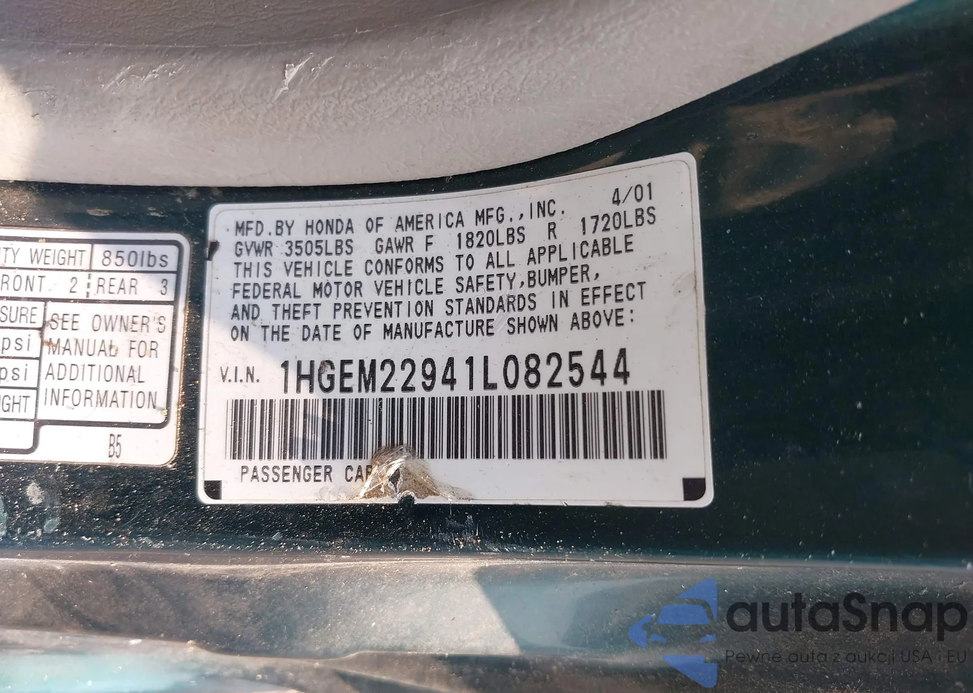 LOT: 42900890 VIN: 1HGEM22941L082544
