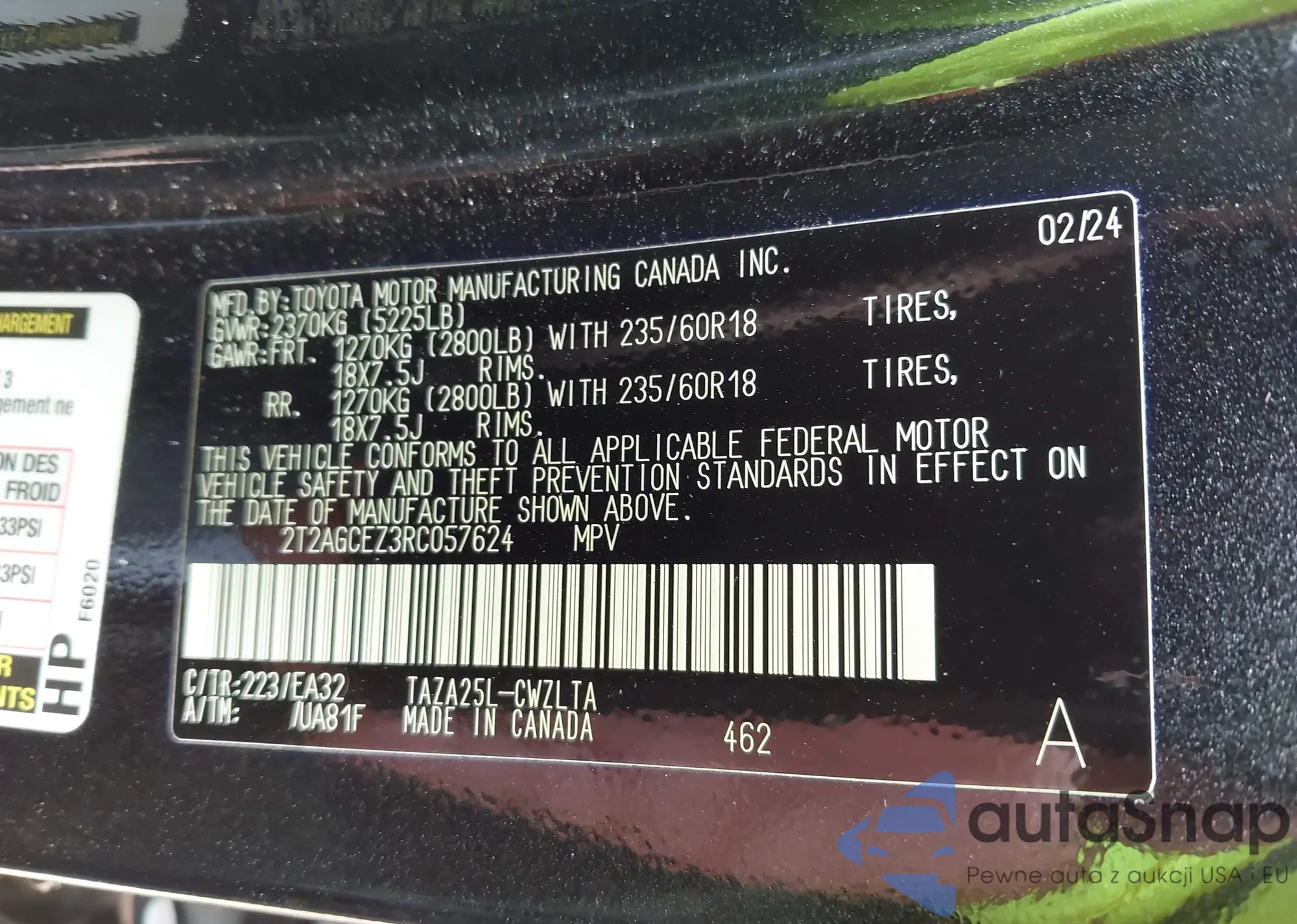 • VIN 2T2AGCEZ3RC057624