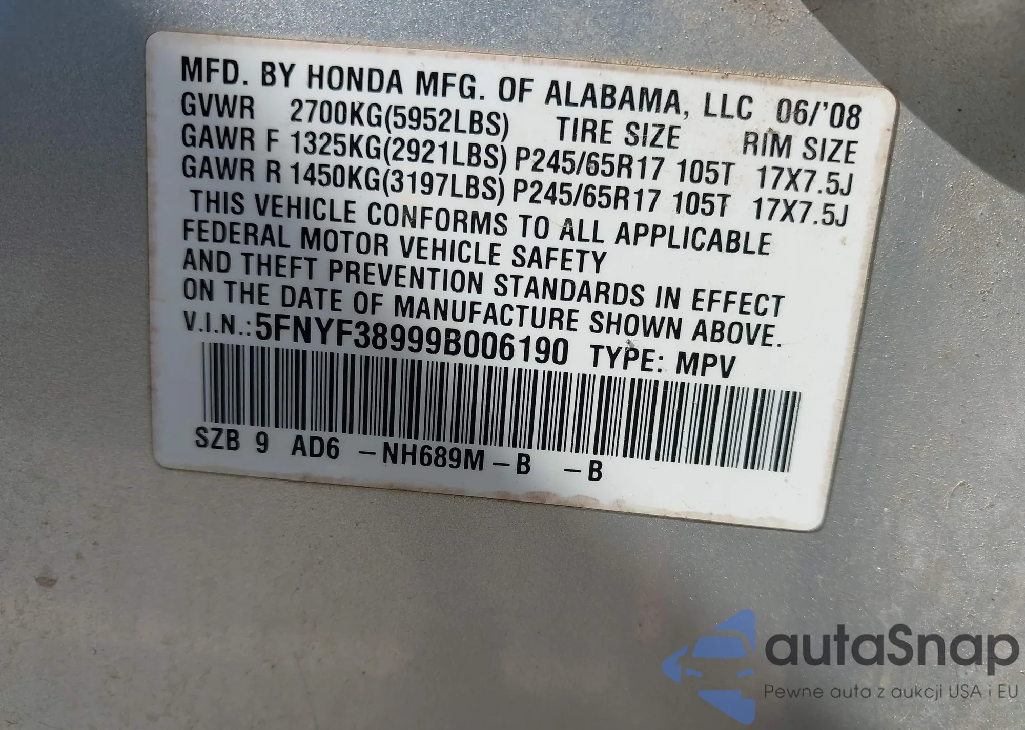 • VIN 2A8GM68X38R109327