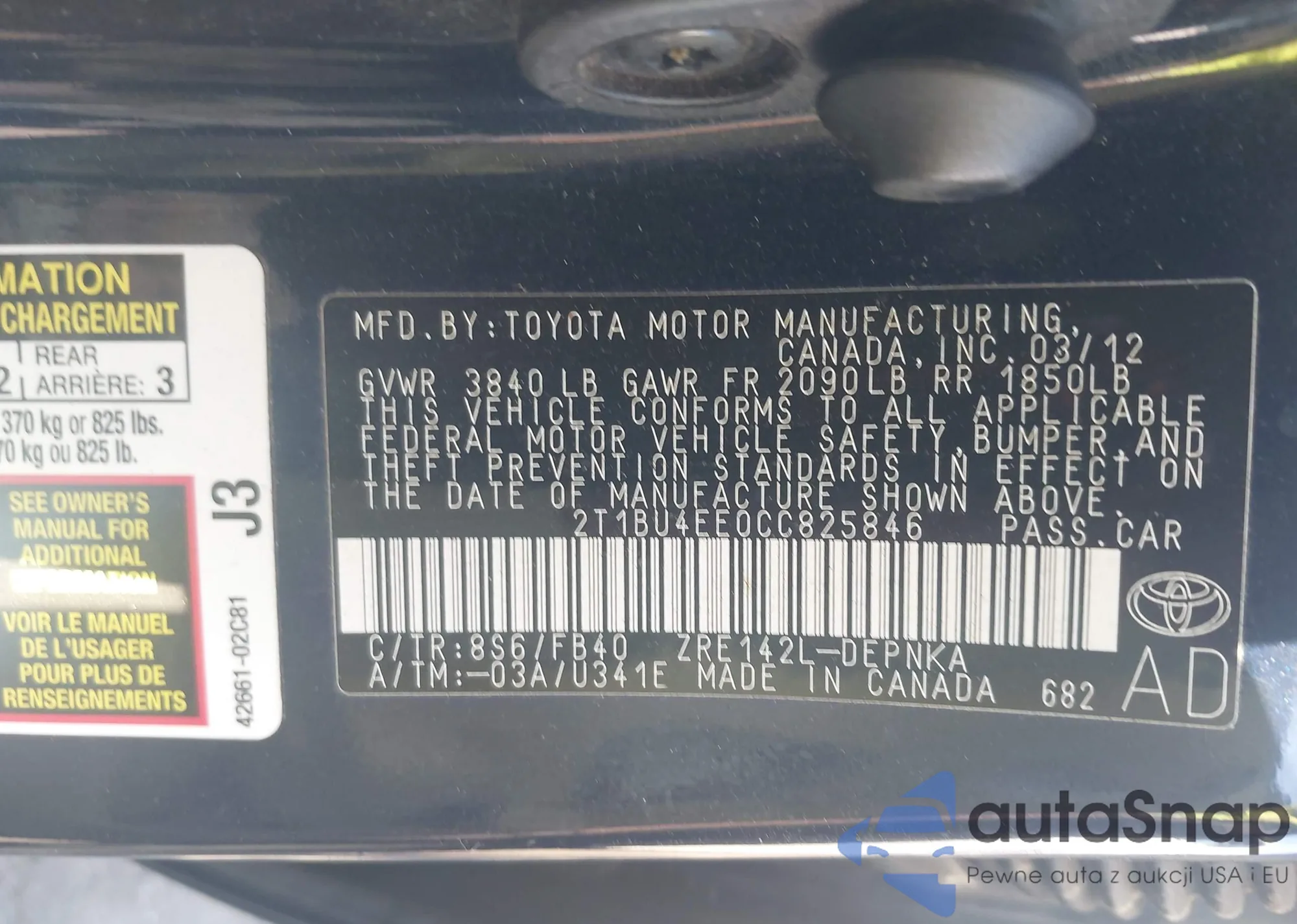 LOT: 43155460 VIN: 2T1BU4EE0CC825846