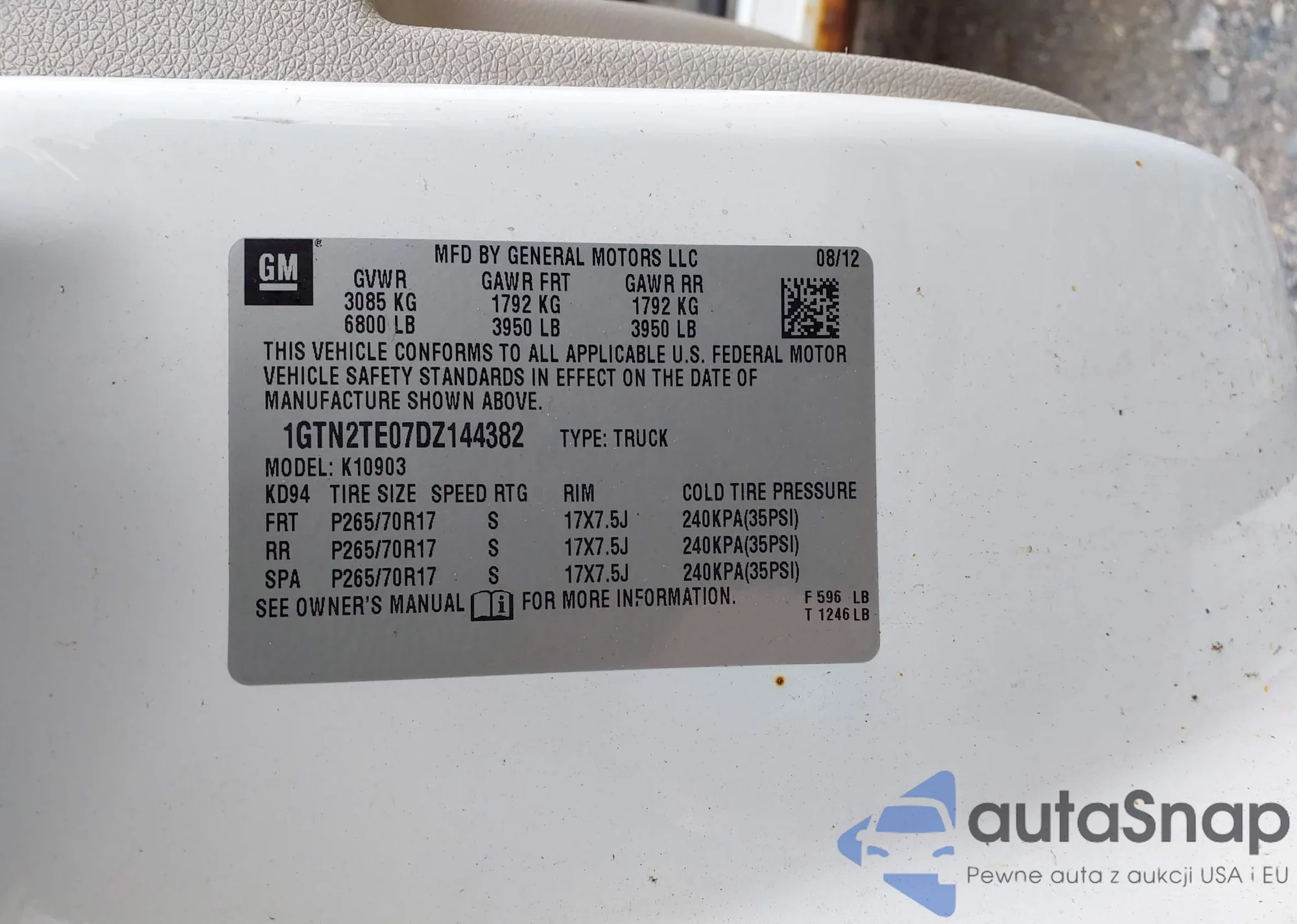 • VIN 1GTN2TE07DZ144382