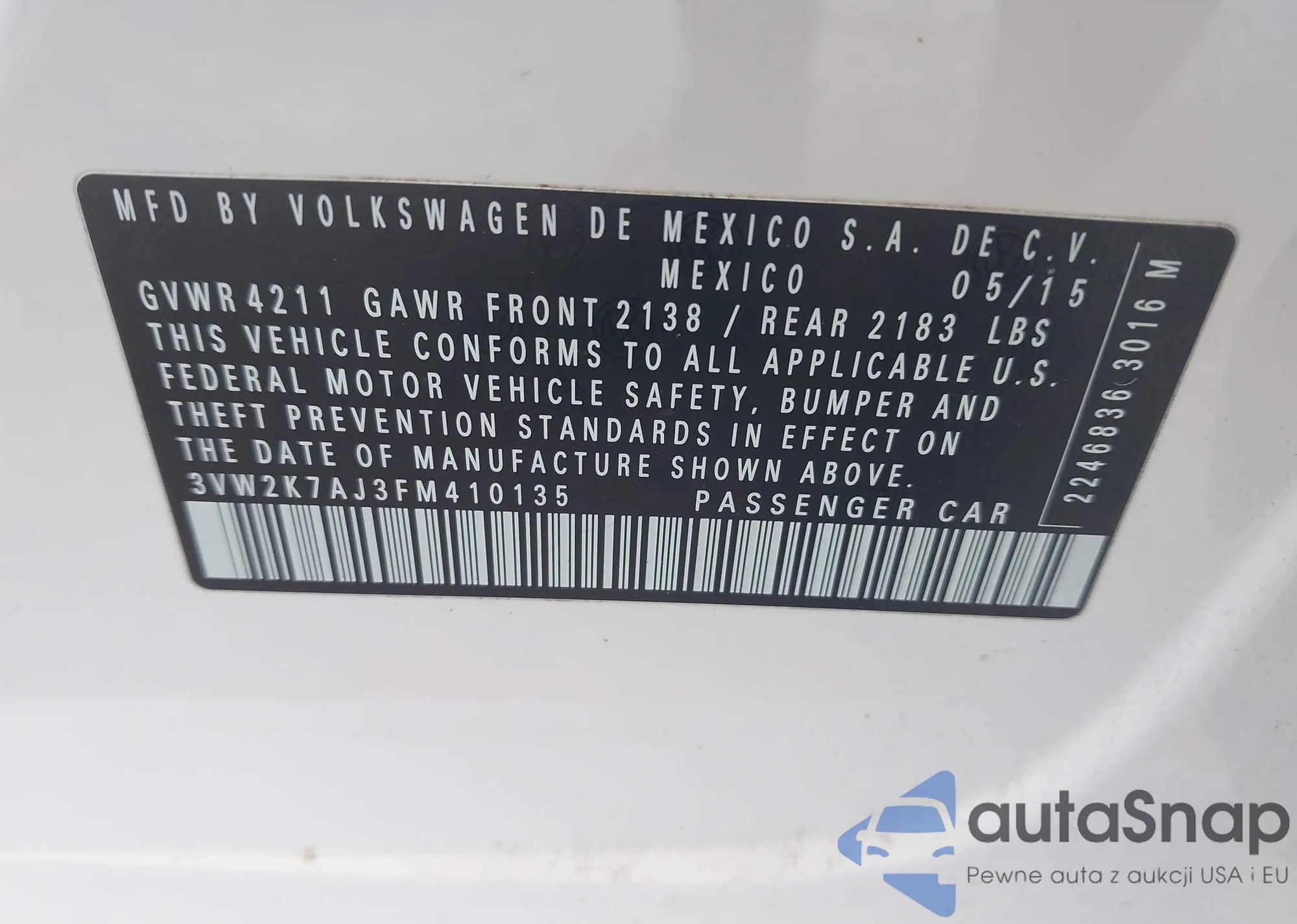• VIN 3VW2K7AJ3FM410135