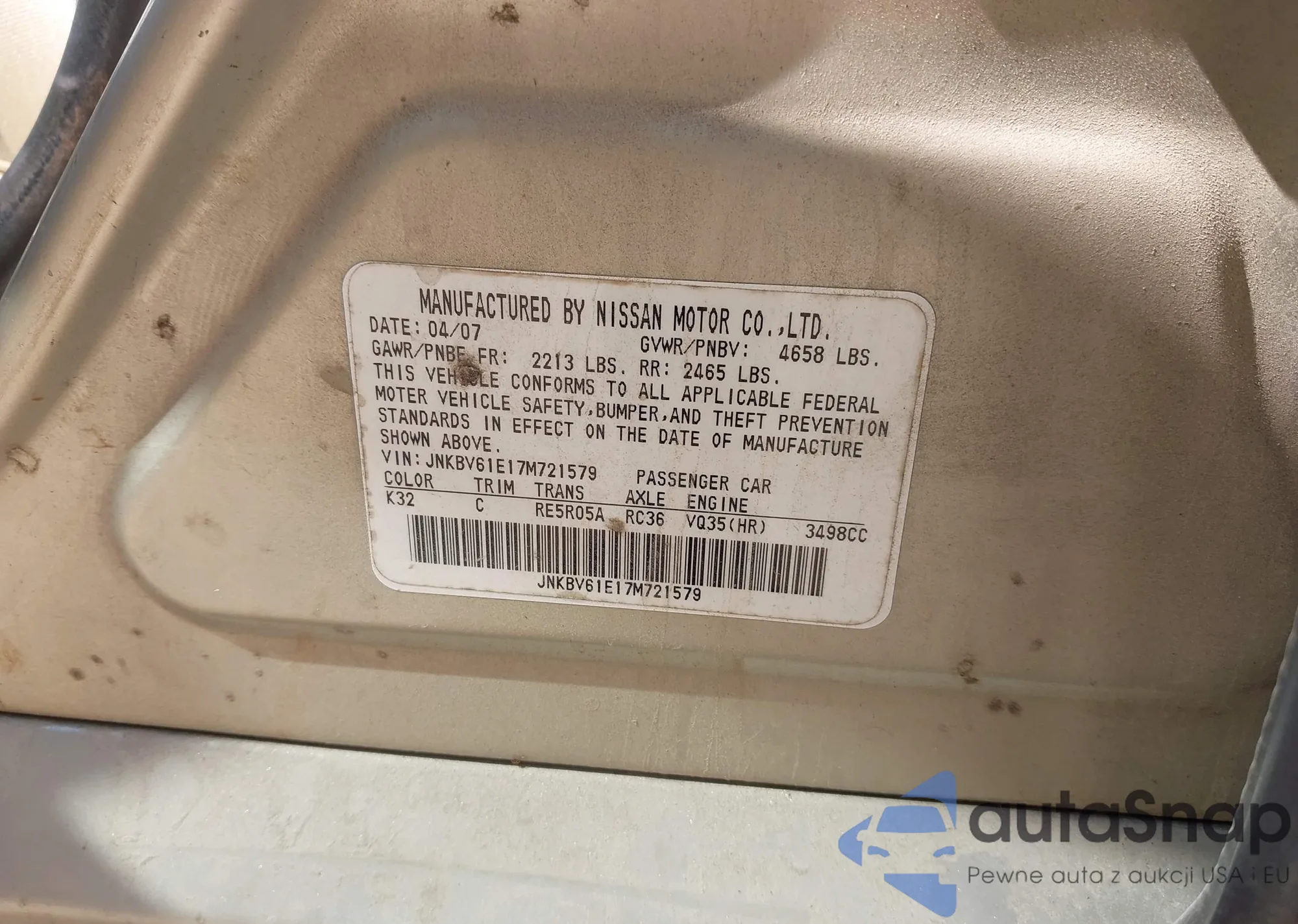 LOT: 43032555 VIN: JNKBV61E17M721579