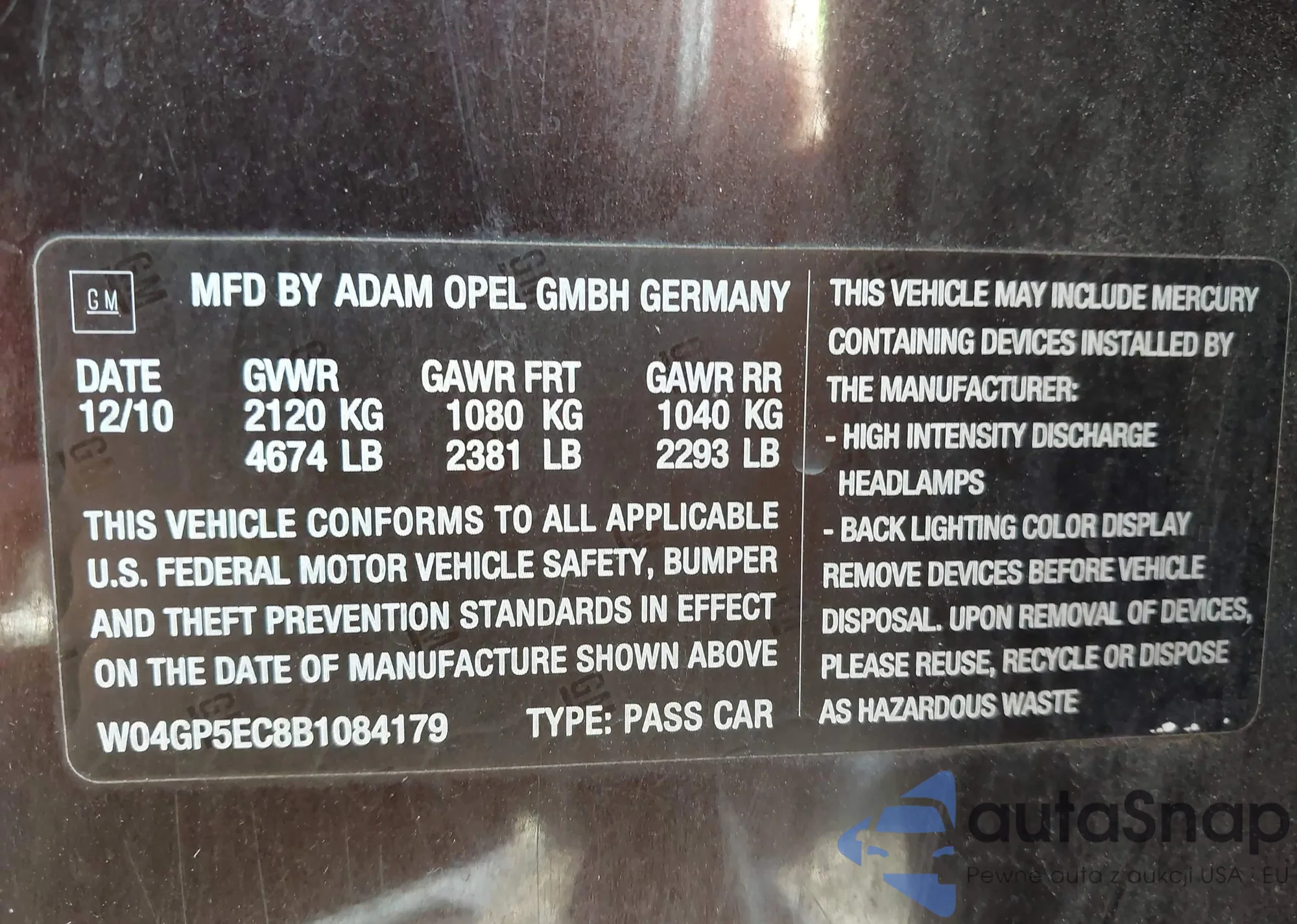 • VIN W04GP5EC8B1084179