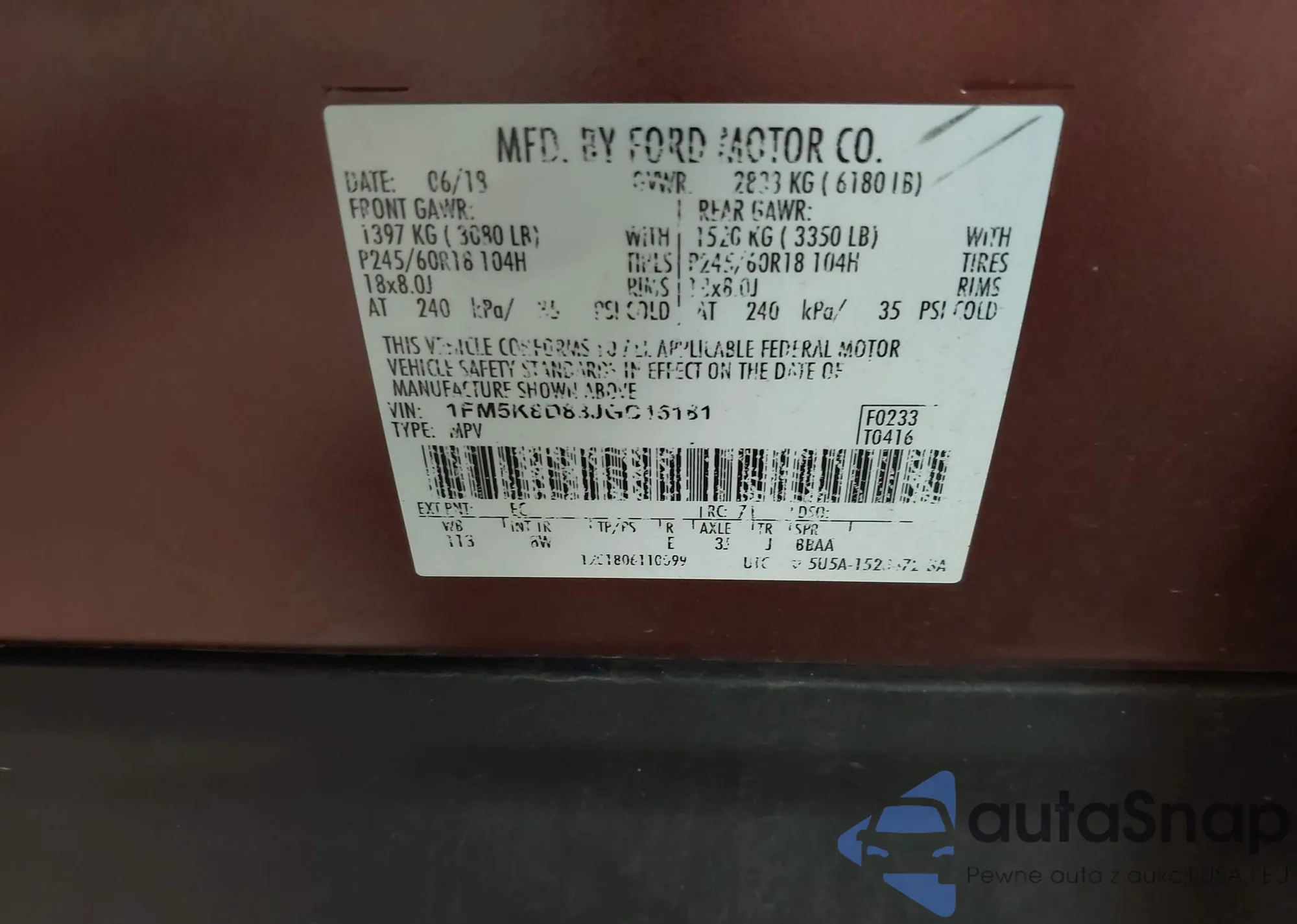 LOT: 42883890 VIN: 1FM5K8D83JGC15181