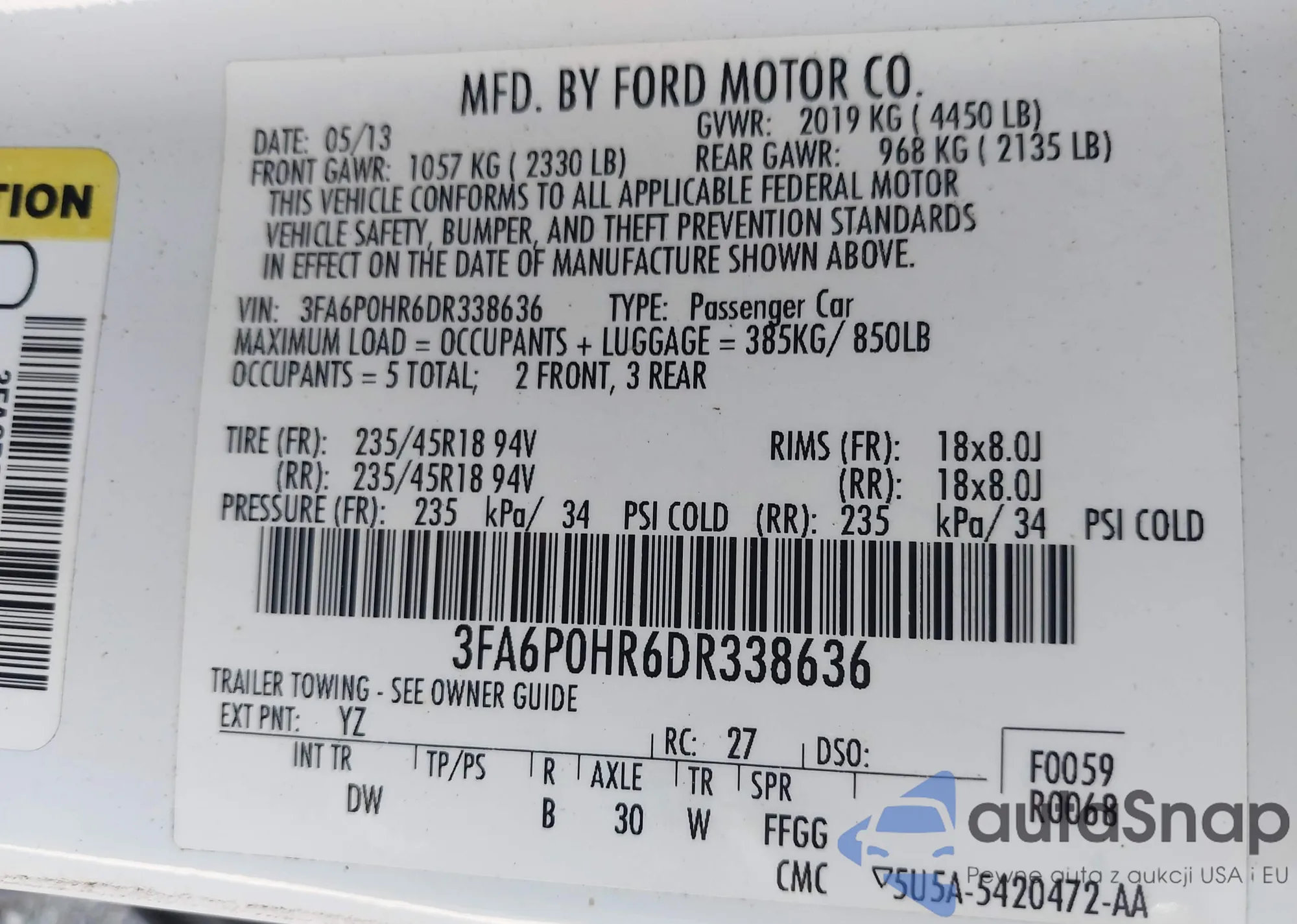 • VIN 3FA6P0HR6DR338636