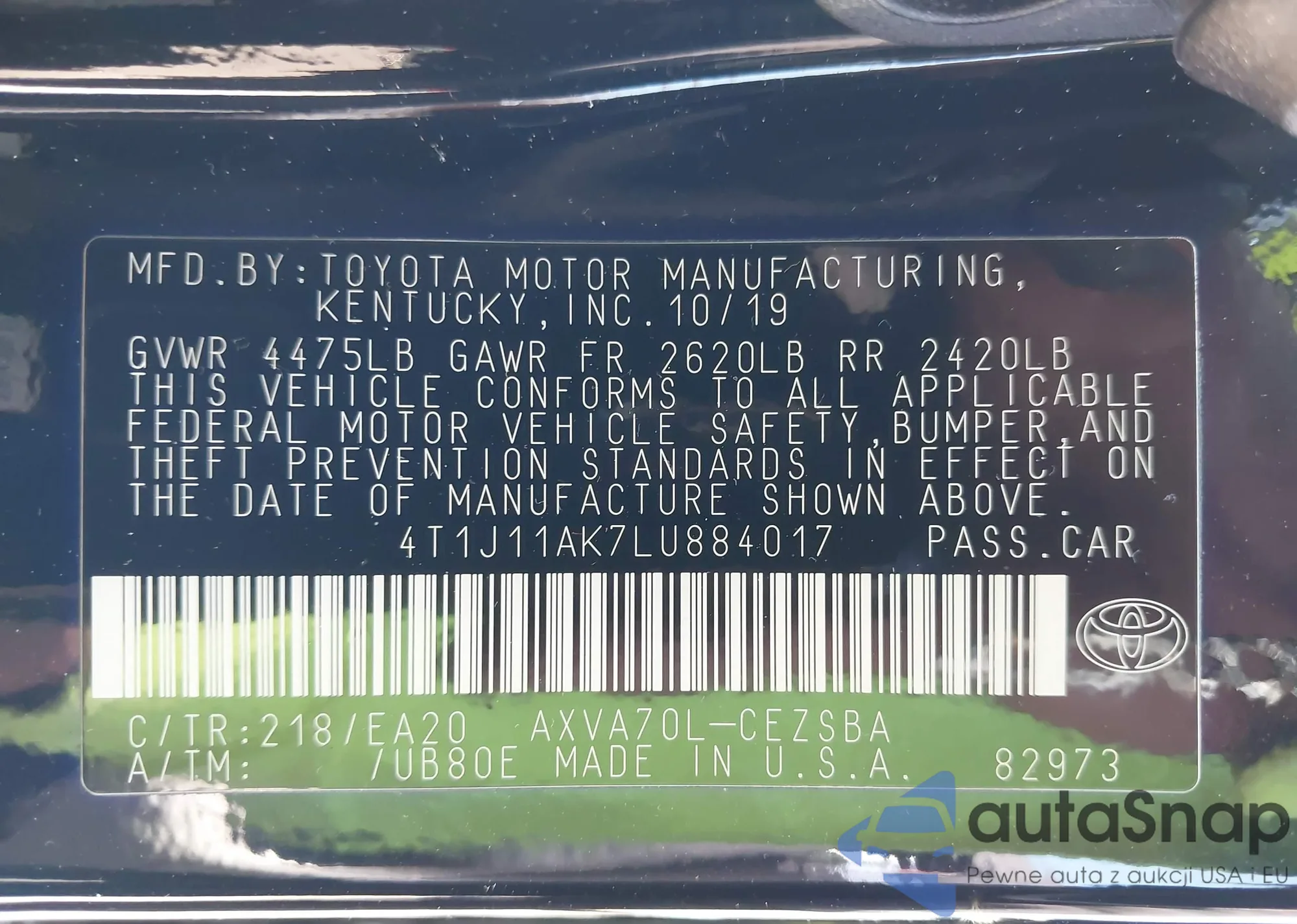 • VIN 4T1J11AK7LU884017