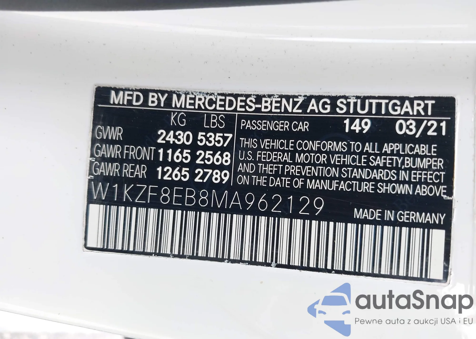 • VIN W1KZF8EB8MA962129