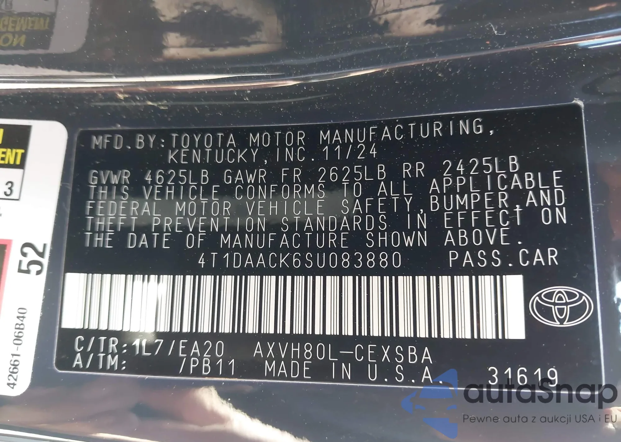 LOT: 42655557 VIN: 4T1DAACK6SU083880