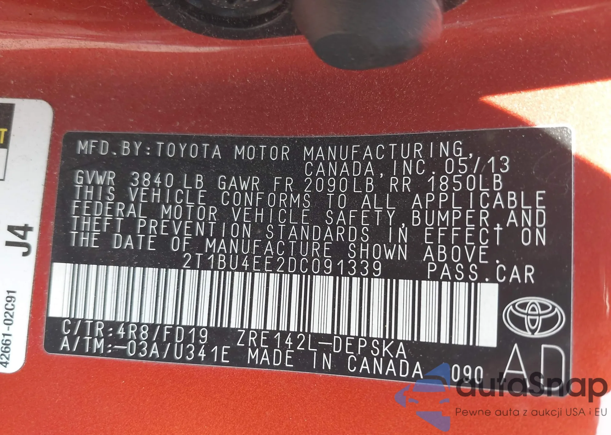 LOT: 42902491 VIN: 2T3E6RFV8MW018209