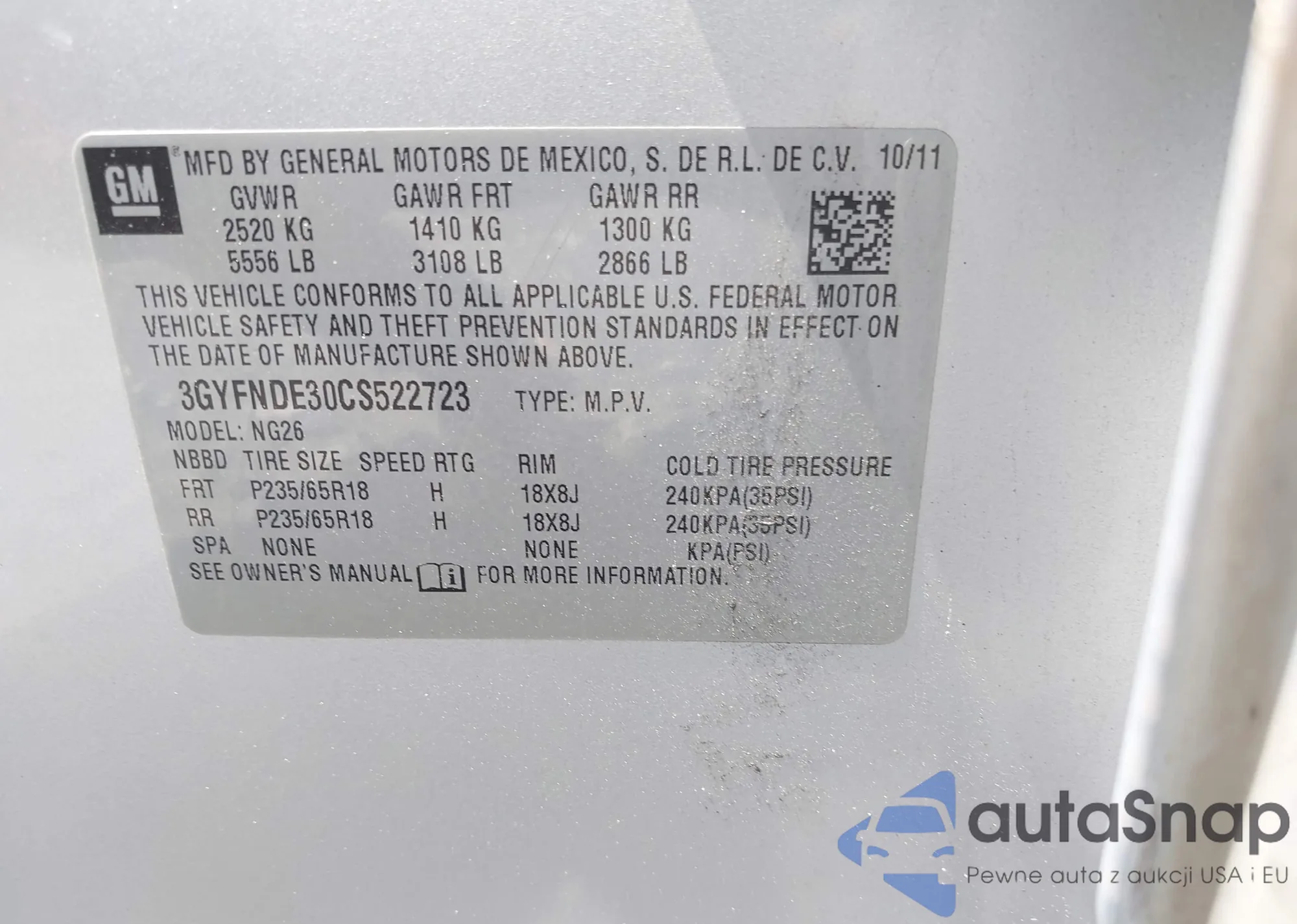 LOT: 42901223 VIN: 3GYFNDE30CS522723
