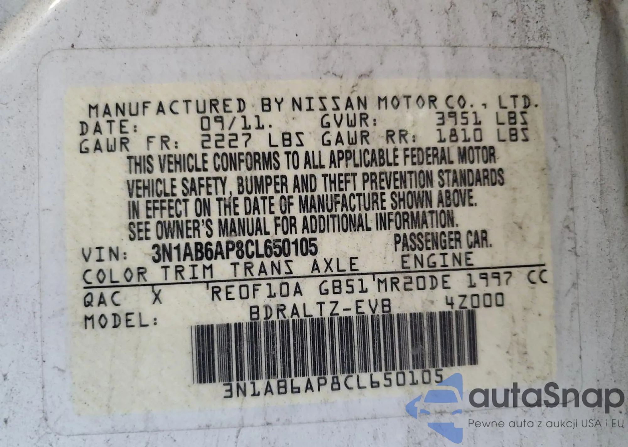 • VIN 5FPYK1F58AB009402