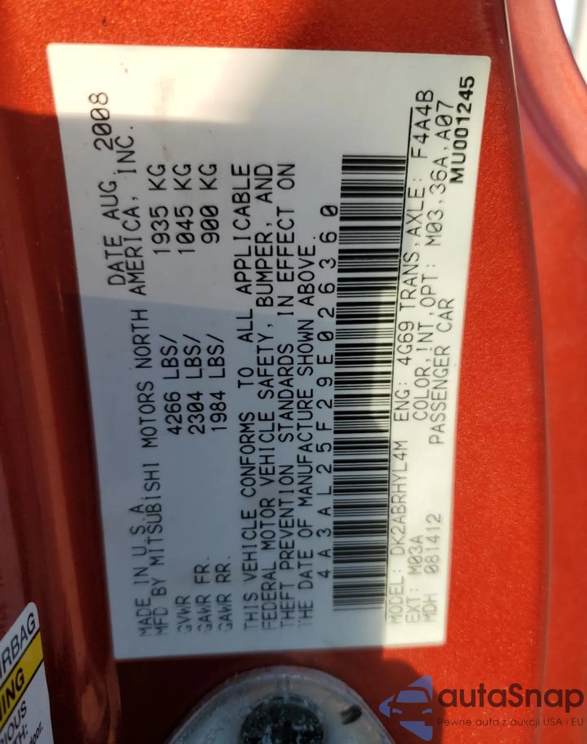 • VIN 4A3AL25F29E026360
