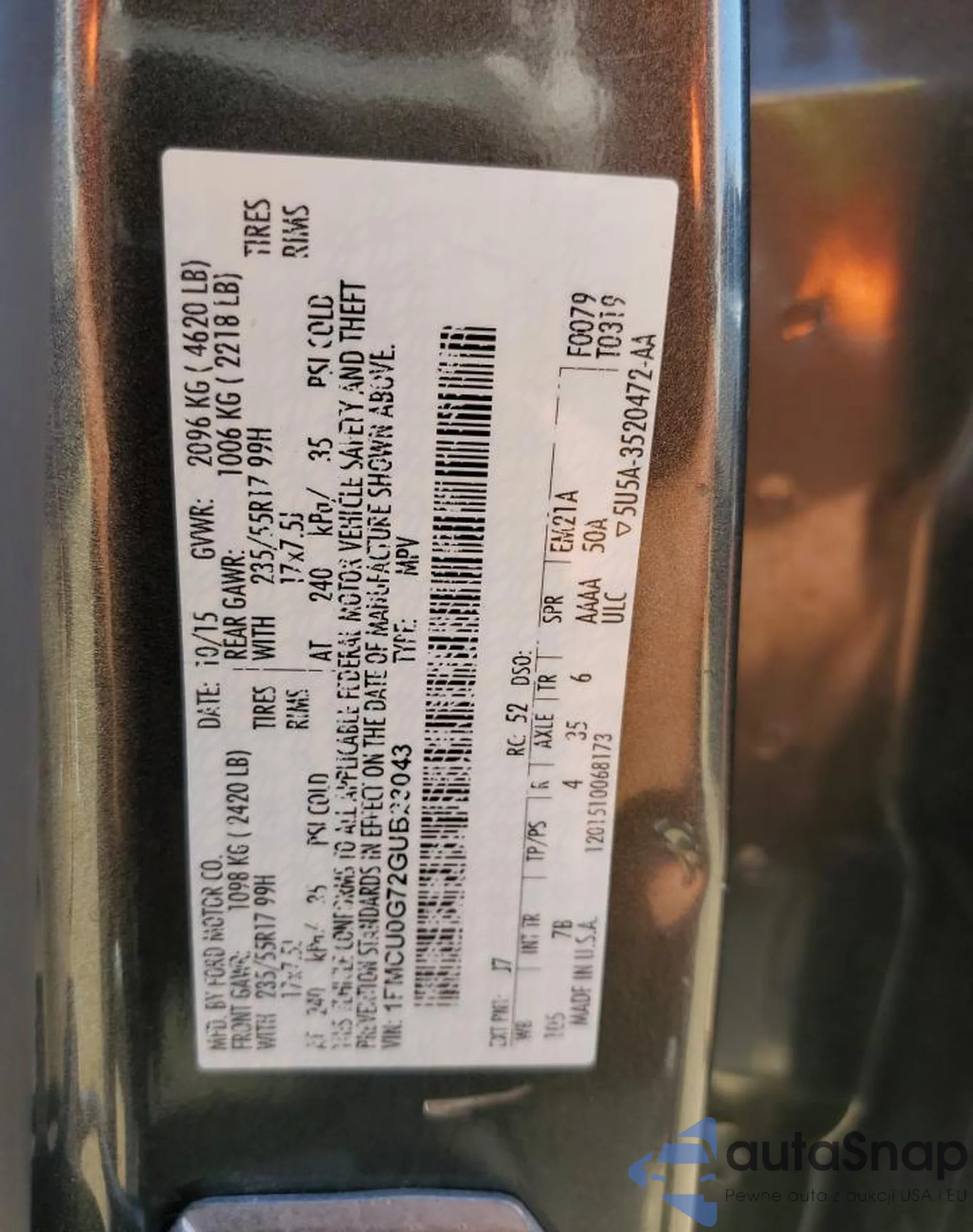 LOT: 68935895 VIN: 1FMCU0G72GUB23043
