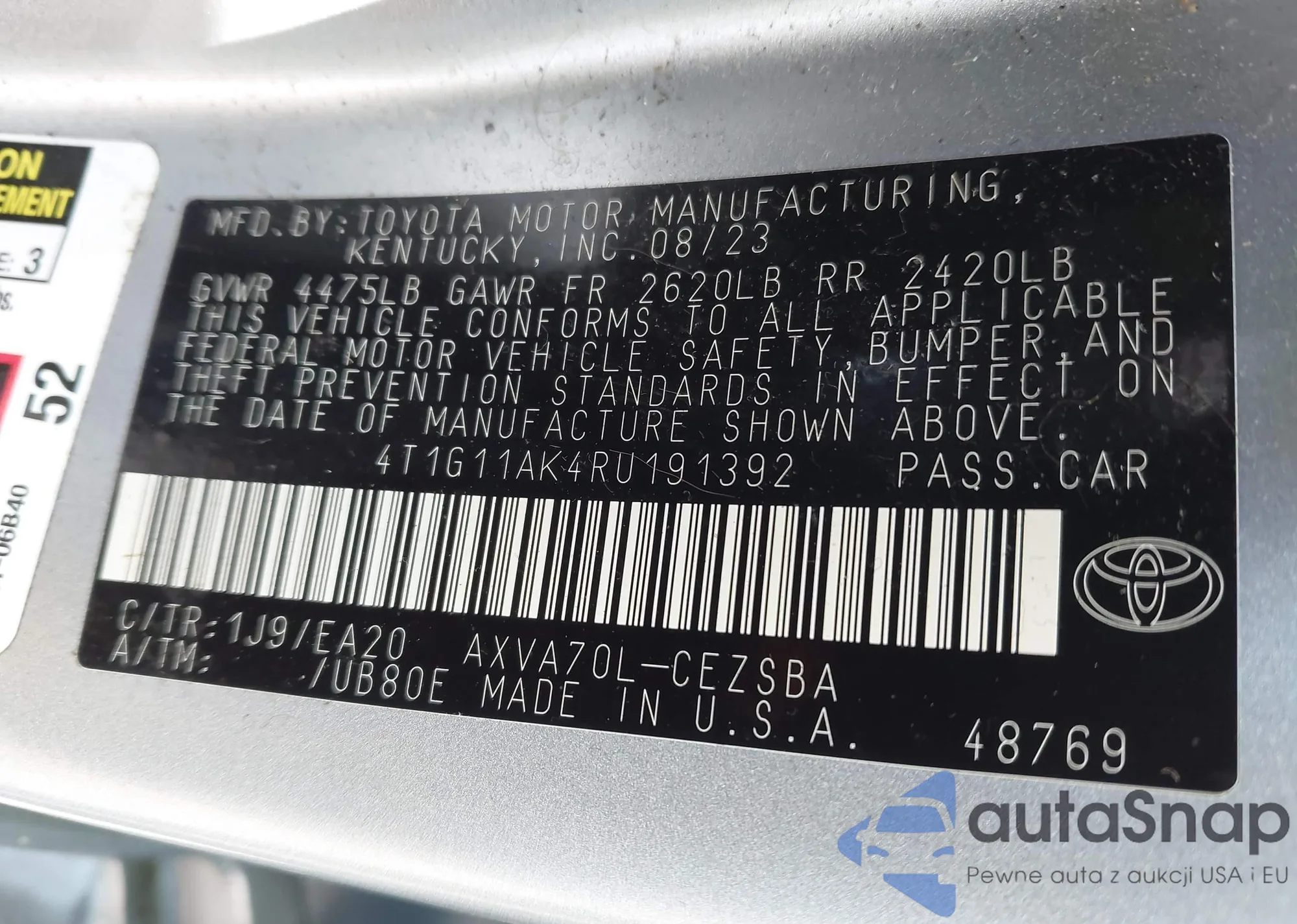 LOT: 42695762 VIN: 4T1G11AK4RU191392