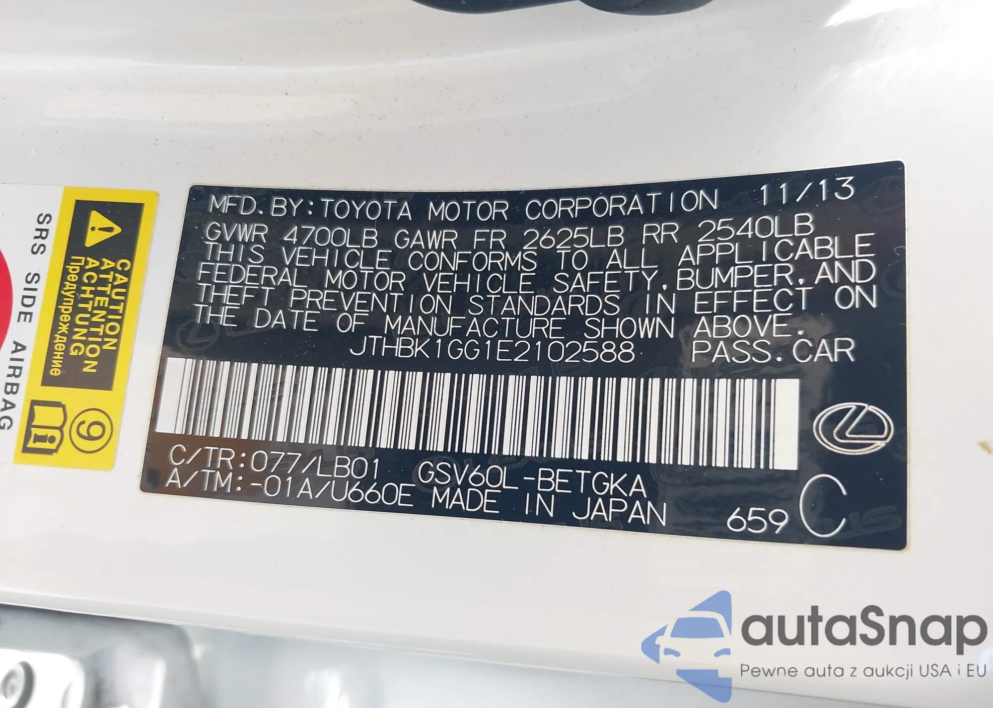 LOT: 43118234 VIN: JT6HT00WXY0095796