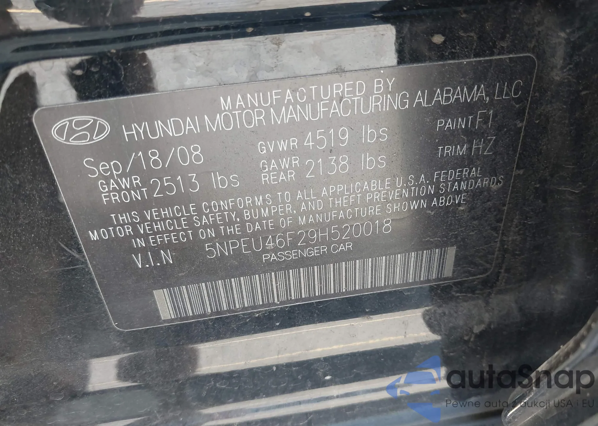 • VIN 5NPEU46F29H520018