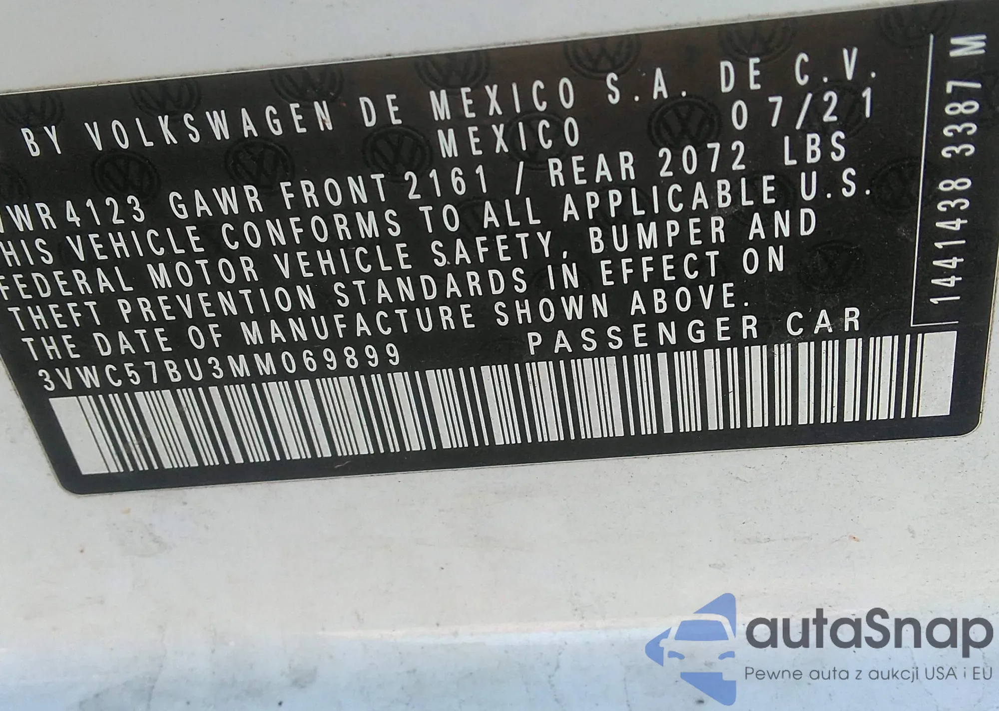 • VIN 3VWC57BU3MM069899