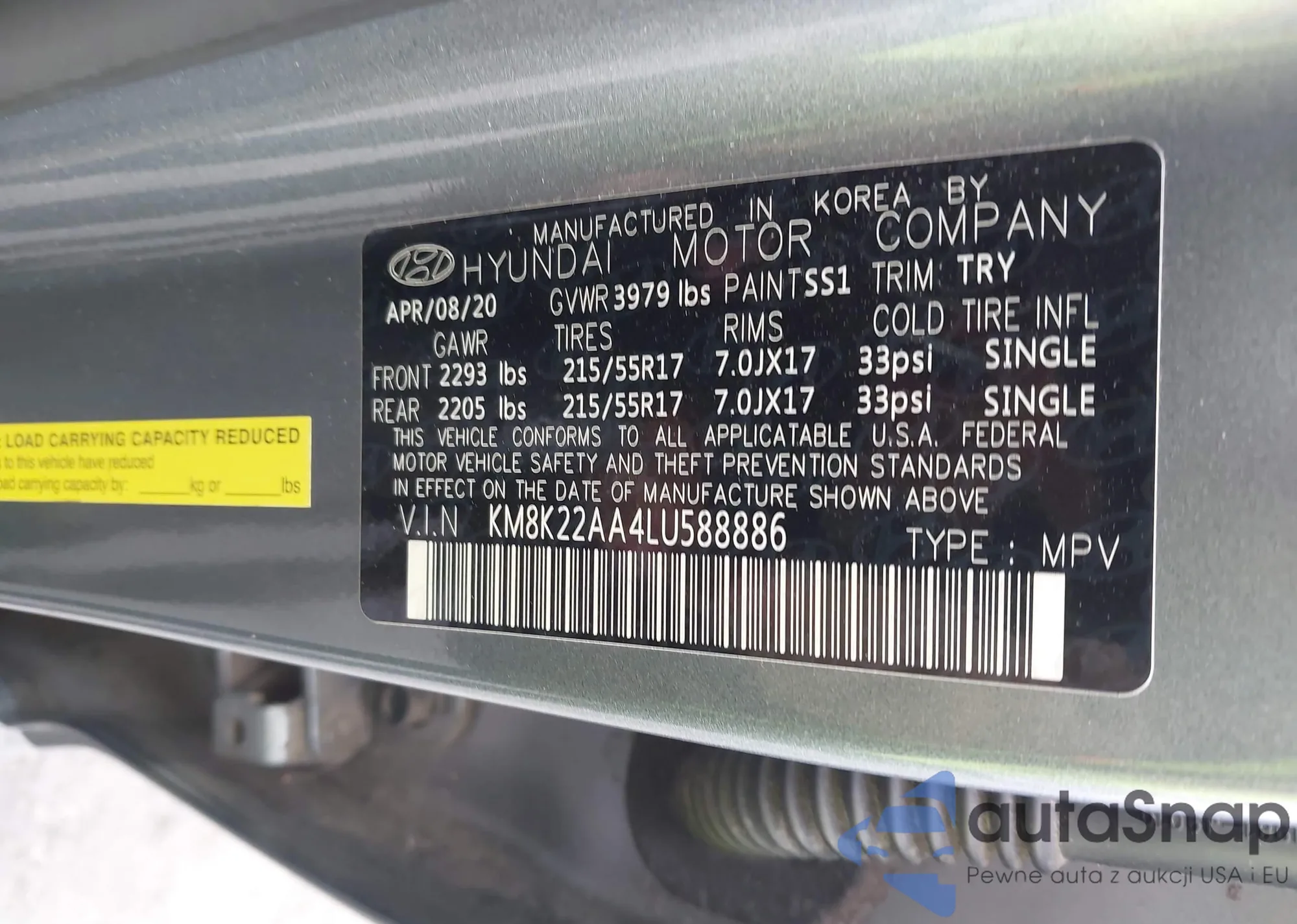 • VIN 5XYZTDLB9DG087268