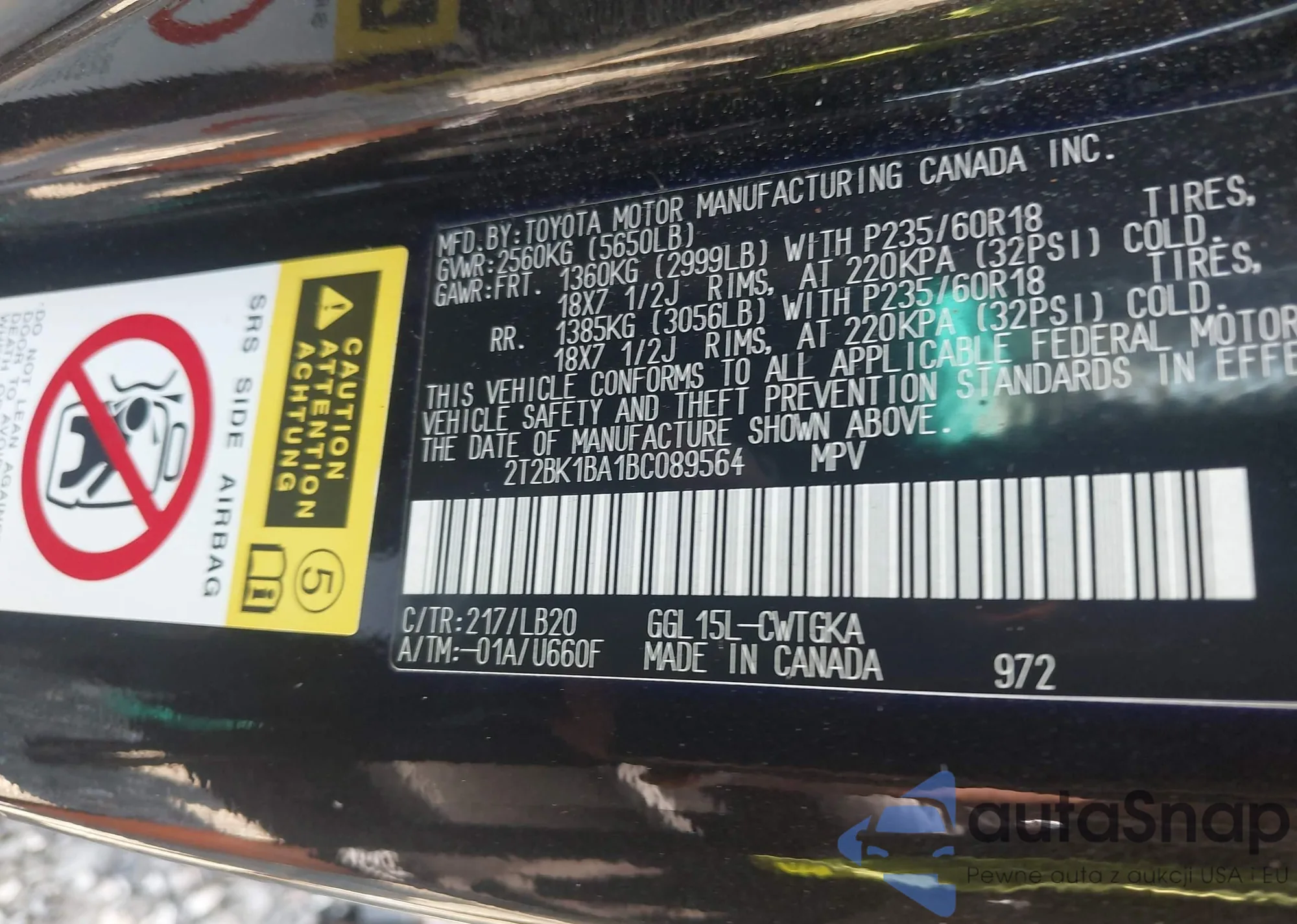 LOT: 42850137 VIN: 2T2BK1BA1BC089564