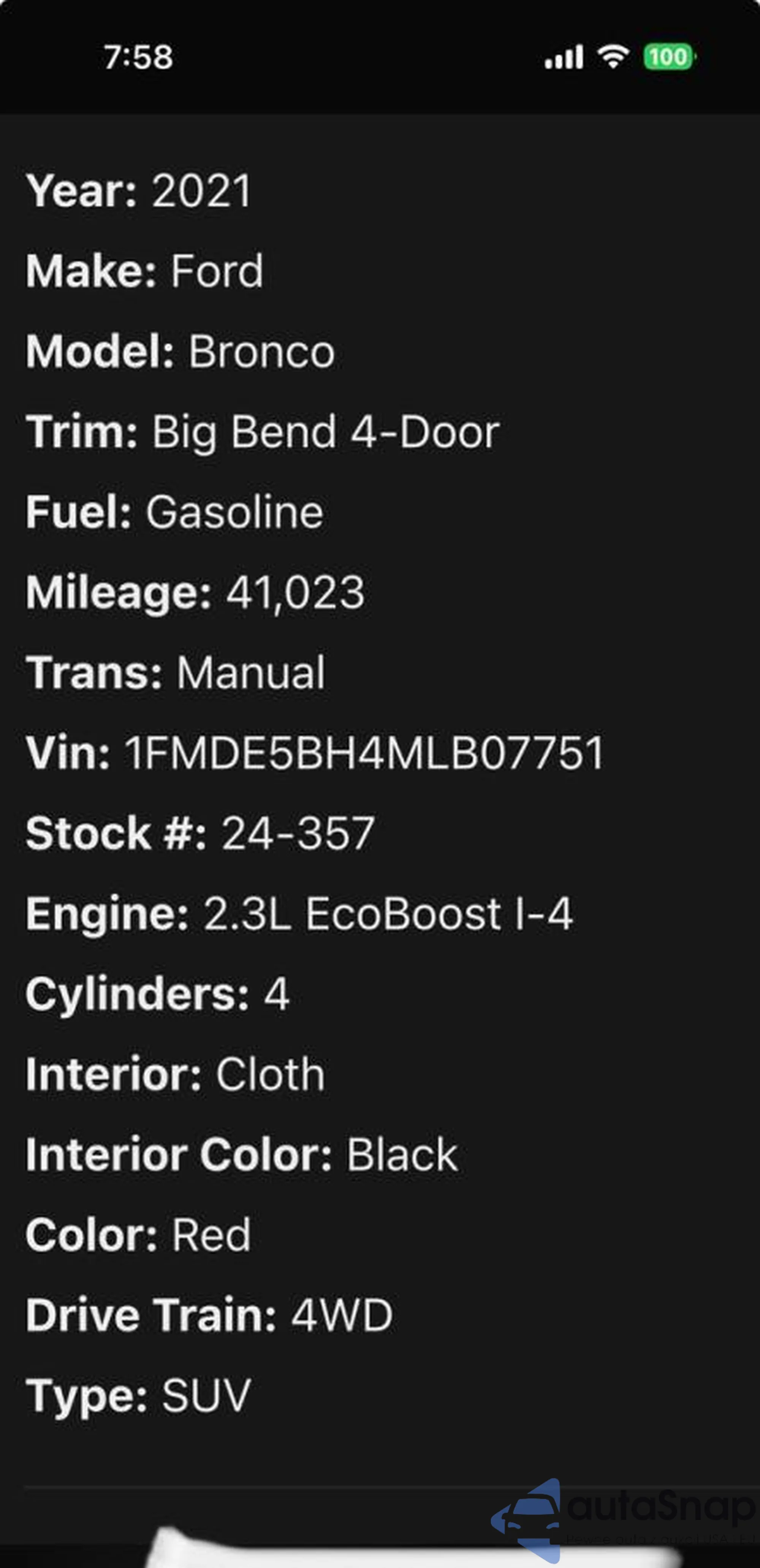 2021 Ford Bronco Base z USA, uszkodzony, nr VIN 1FMDE5BH4MLB07751