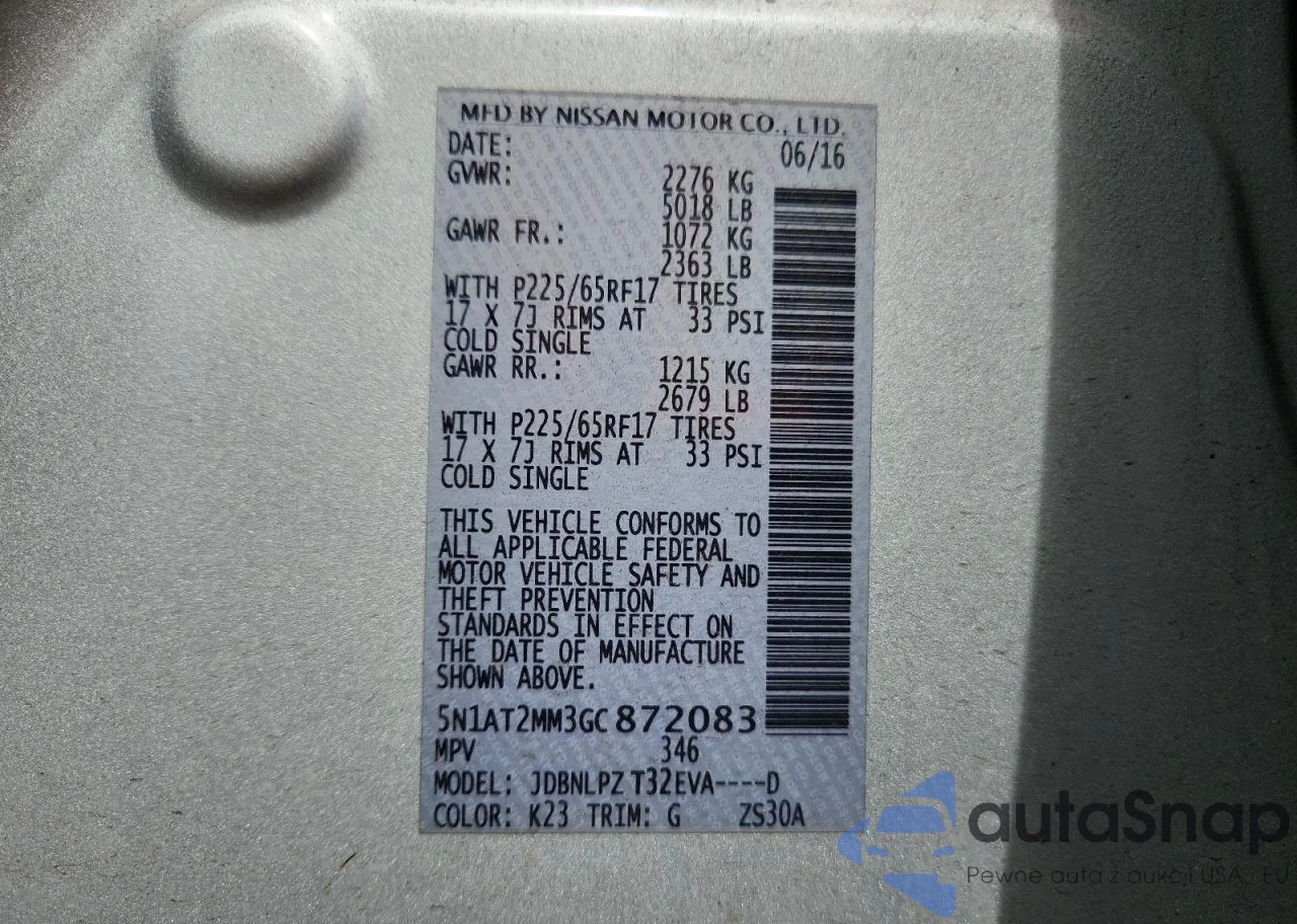 • VIN 5N1AT2MM3GC872083