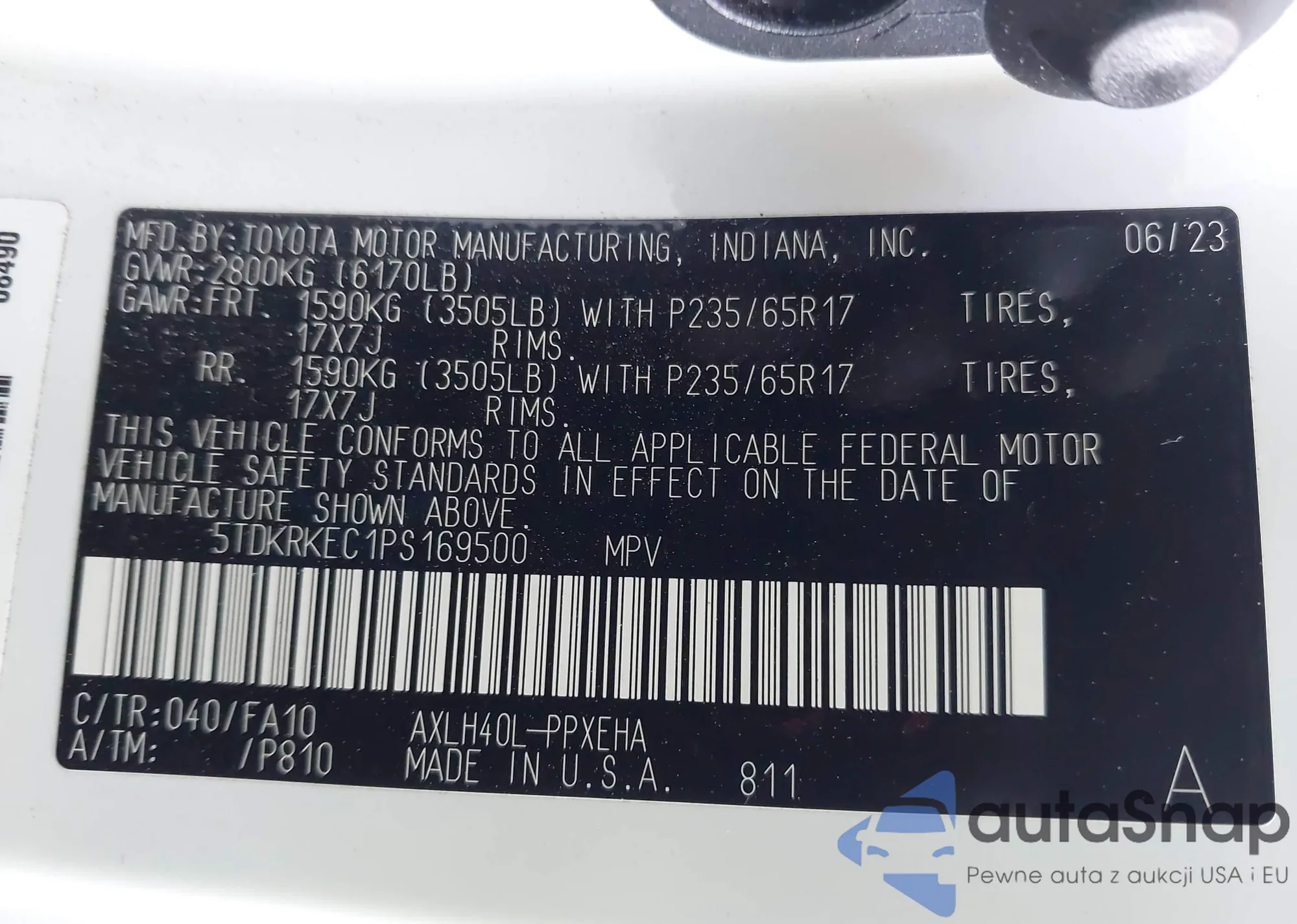 LOT: 42920846 VIN: 5TDKRKEC1PS169500