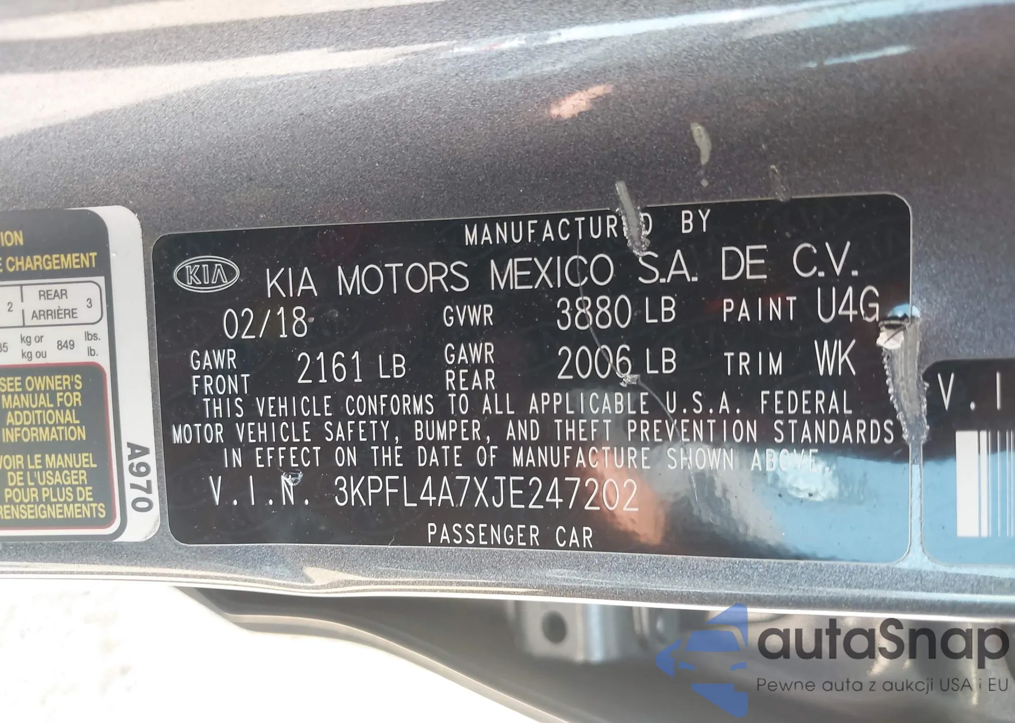 LOT: 42937201 VIN: 3KPFL4A7XJE247202