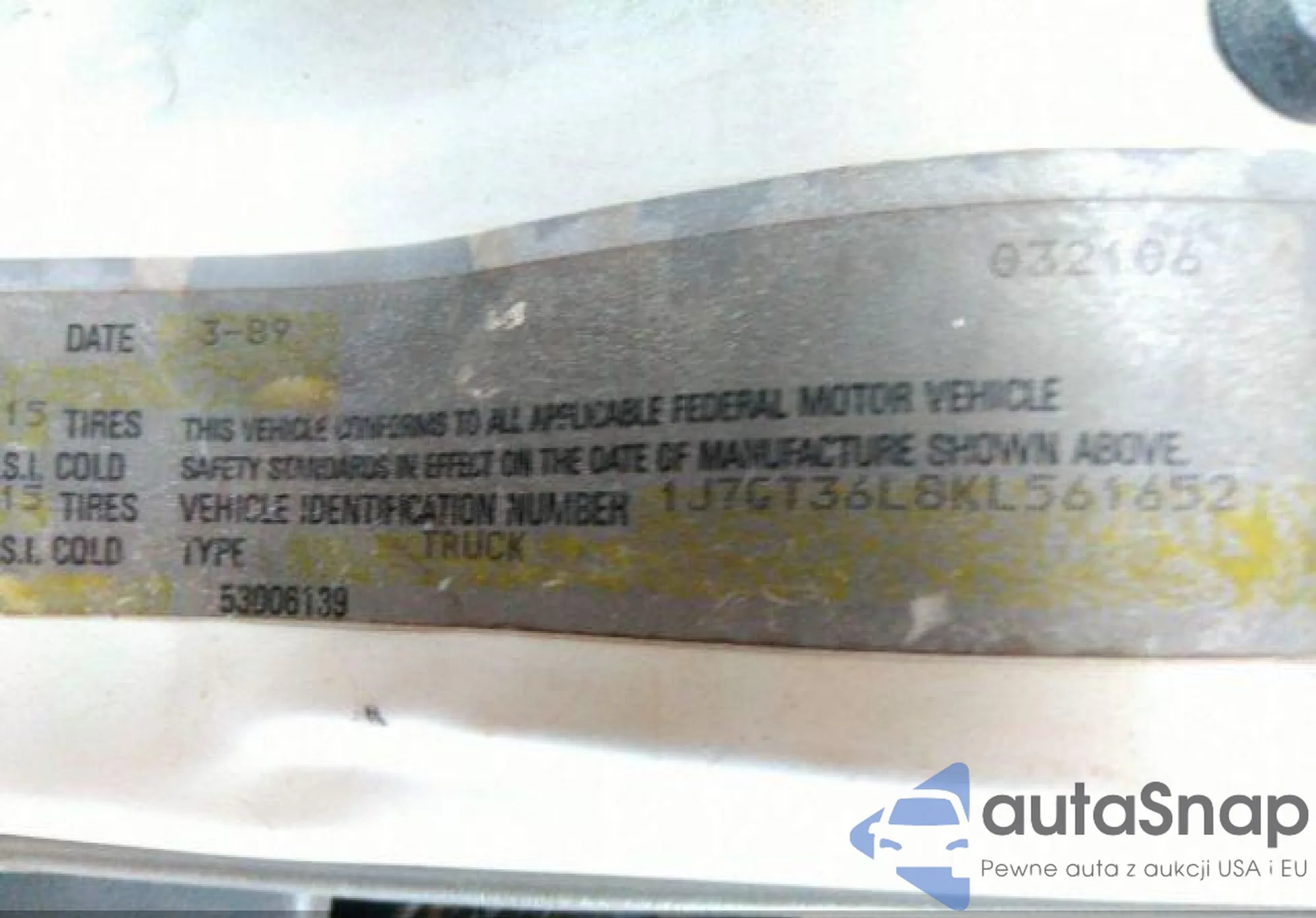 • VIN 1J7GT36L8KL561652
