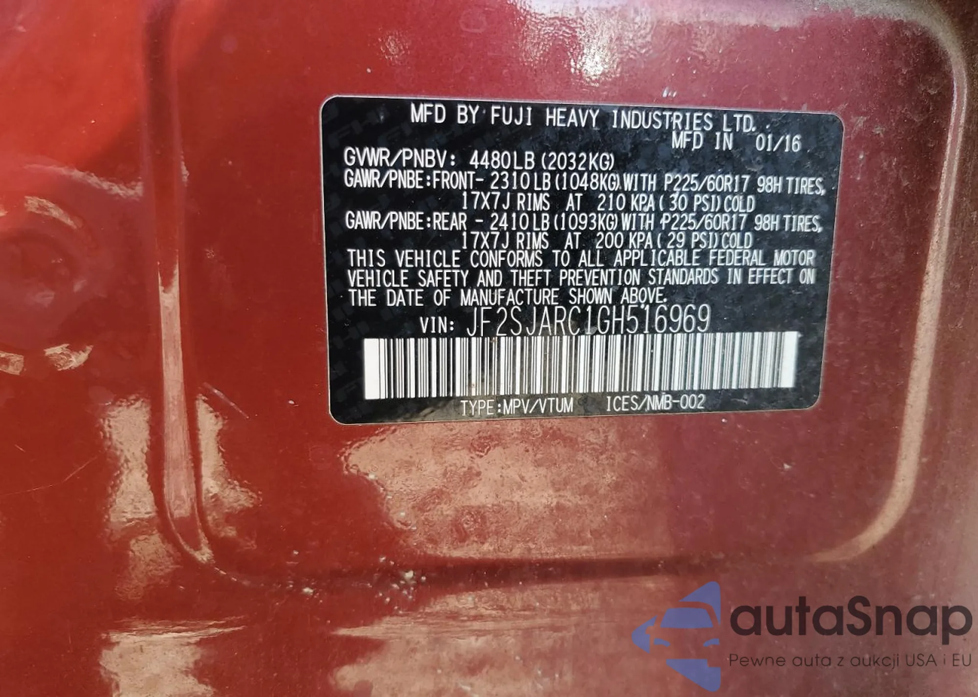 • VIN JF2SJARC1GH516969
