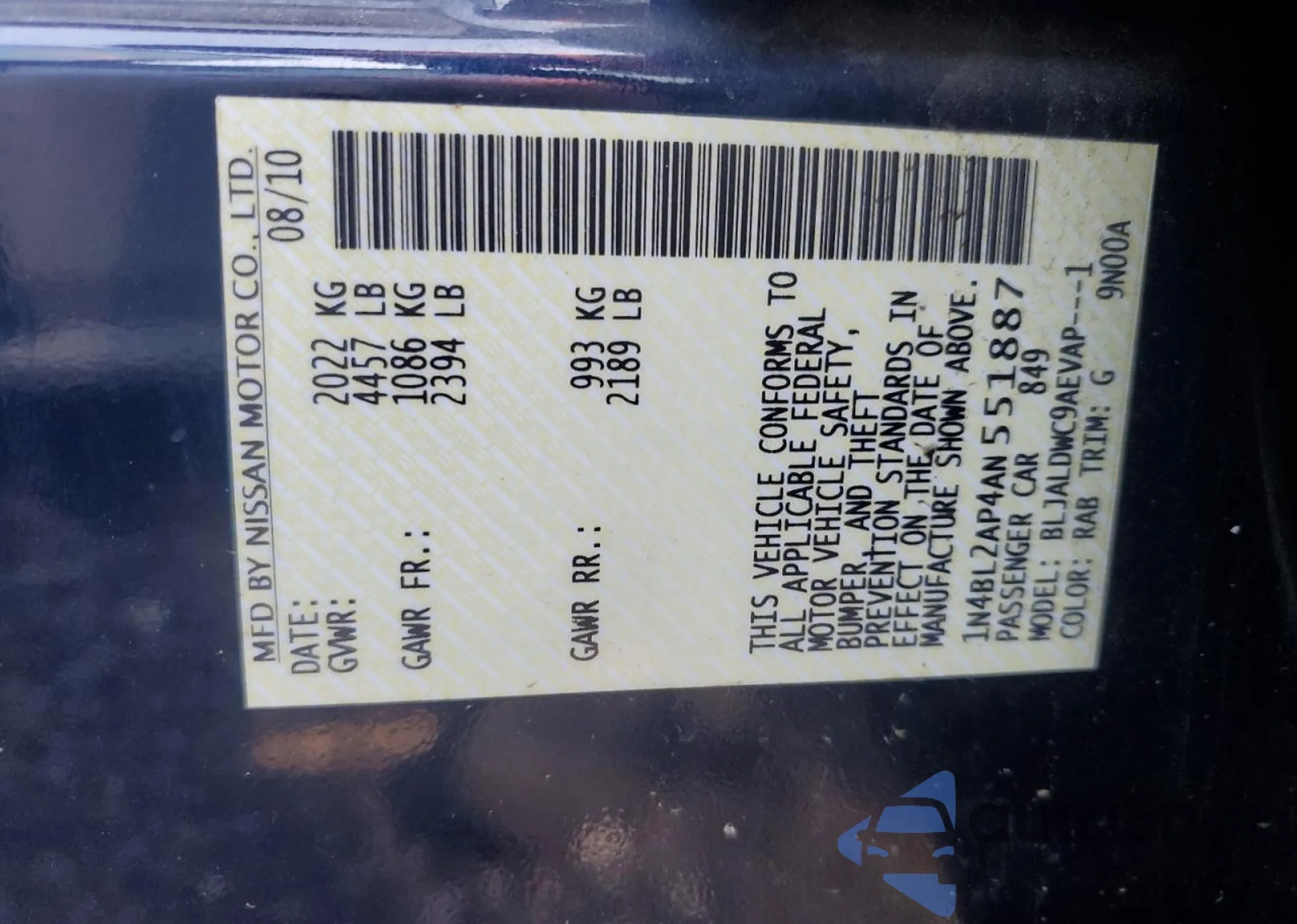 LOT: 71626435 VIN: 1N4BL2AP4AN551887