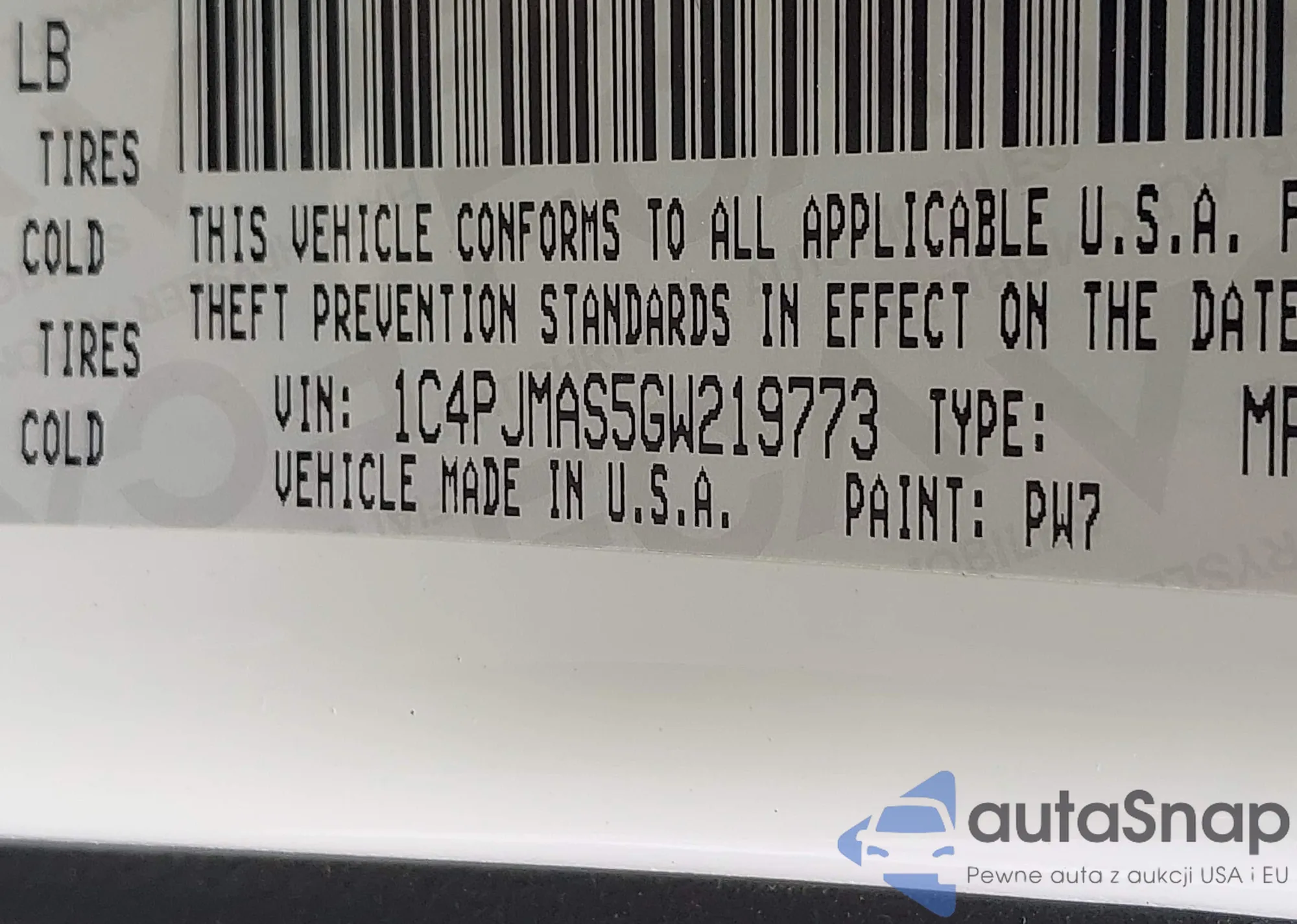 • VIN 1C4PJMAS5GW219773